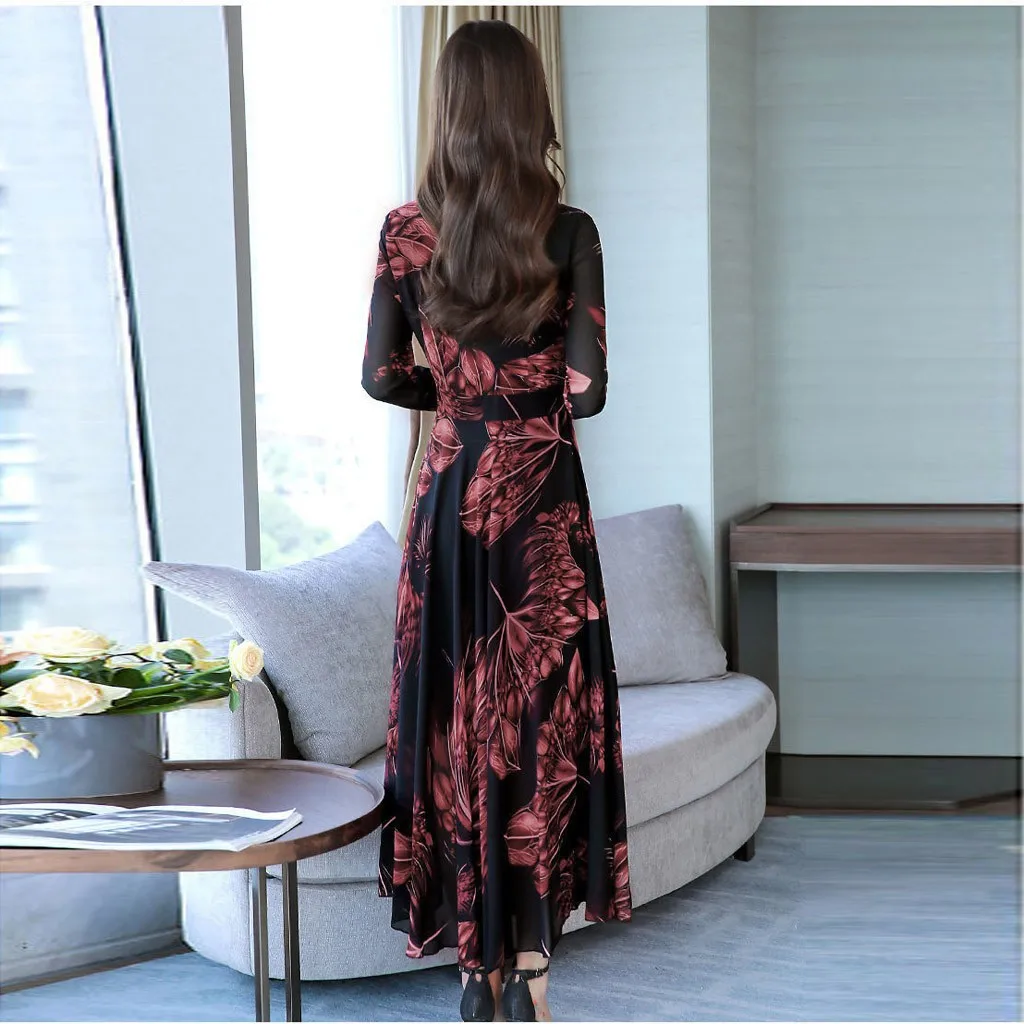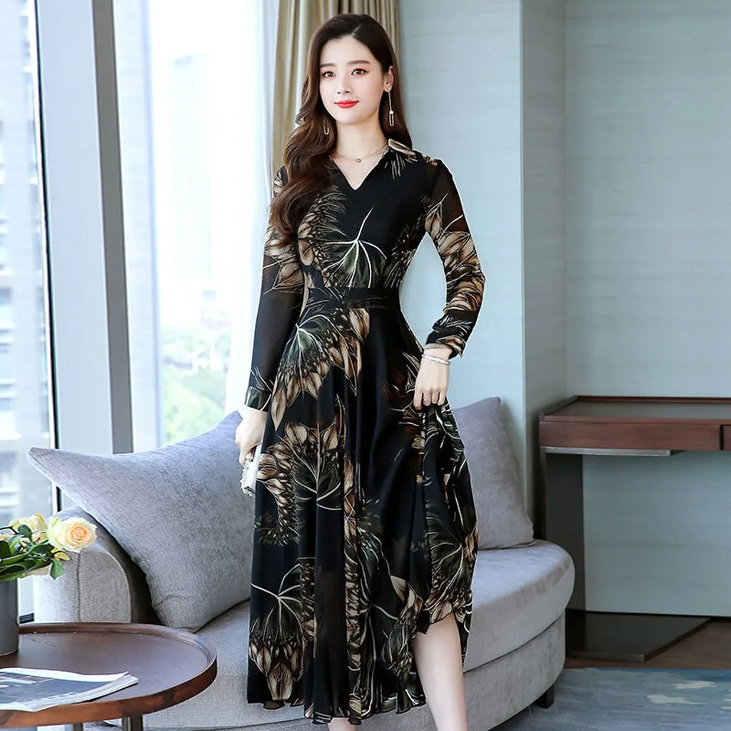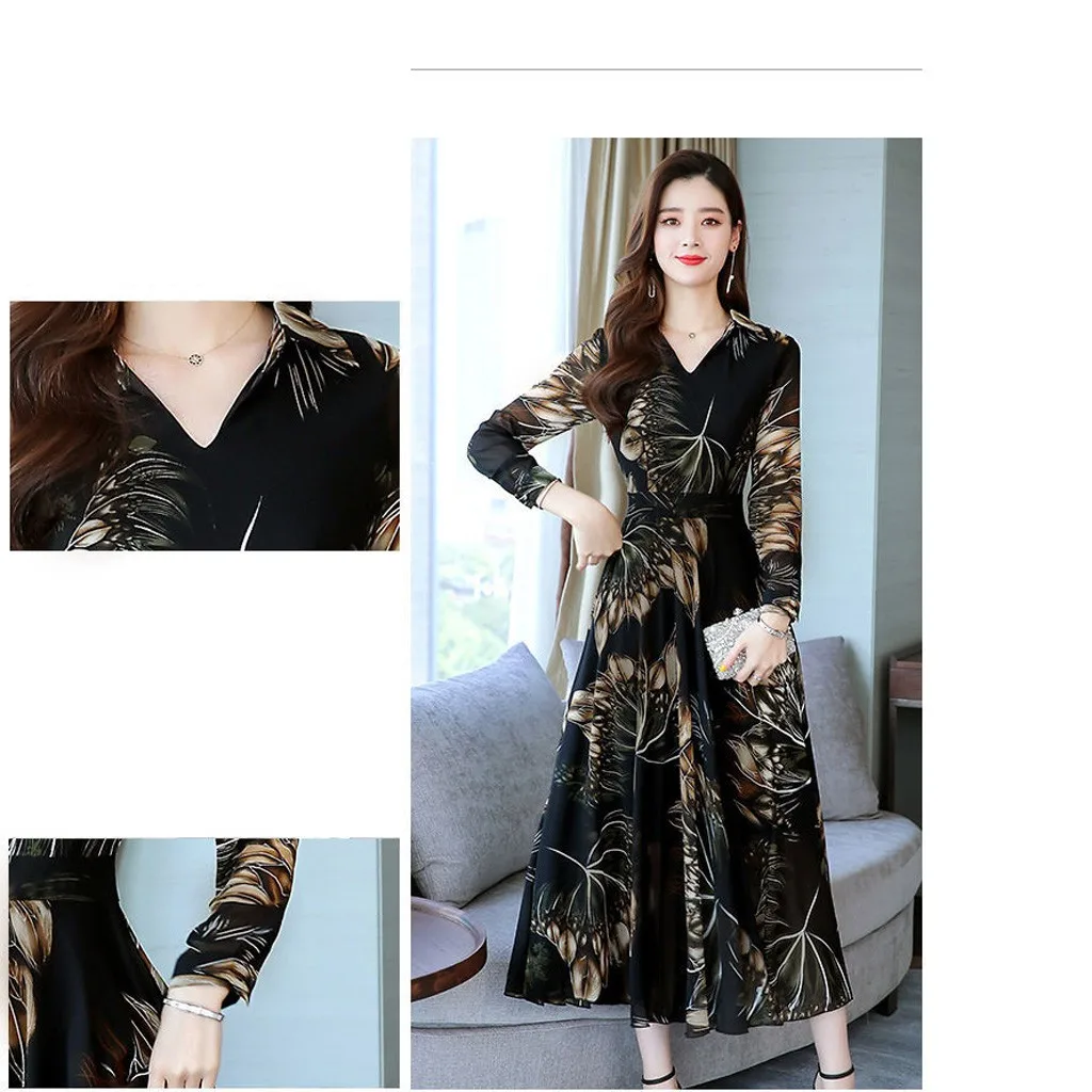 Особенности: винтажное платье с принтом, v-образным вырезом, длинным рукавом, макси-платье, длинное платье, винтажный стиль, платье с запахом, осенне-весеннее платье.