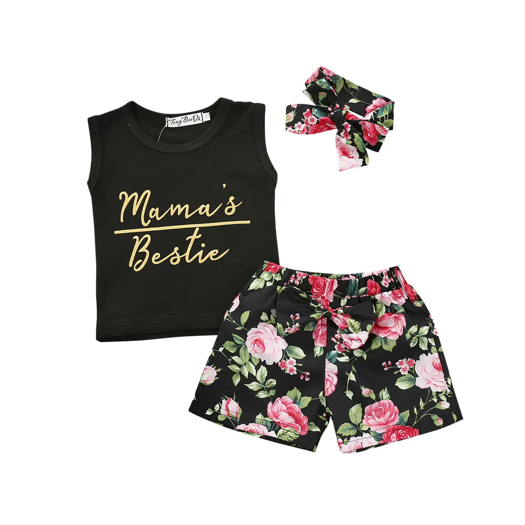 Комплект одежды из 3 предметов для маленьких девочек; Комбинезон без рукавов шорты с бантиком