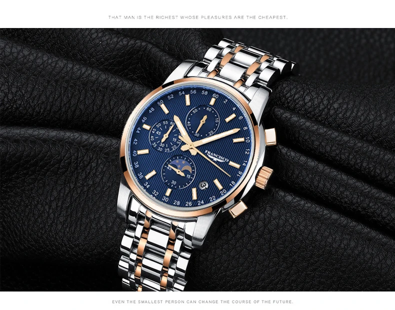 Особенности * Чехол Размеры: 42 мм нержавеющая сталь * Ремешок: ремешок из нержавеющей стали, 20 мм * Стекло: минералы * Часовой механизм: кварцевый хронограф * Водонепроницаемость: 30 м, водонепроницаемость * Срок службы батареи: 3 года * Гарантия: 2 года Примечание: только профессиональные сотрудники могут открыть заднюю крышку, чтобы заменить аккумулятор. В противном случае, вы можете повредить часы. Посылка включает в себя: 1 x кварцевые мужские часы 1 x элегантная коробка для часов, бирка и Карта 1 х Инструкция на английском языке 1 x салфетка для чистки часов Большое количество, пожалуйста, обсудите цену.