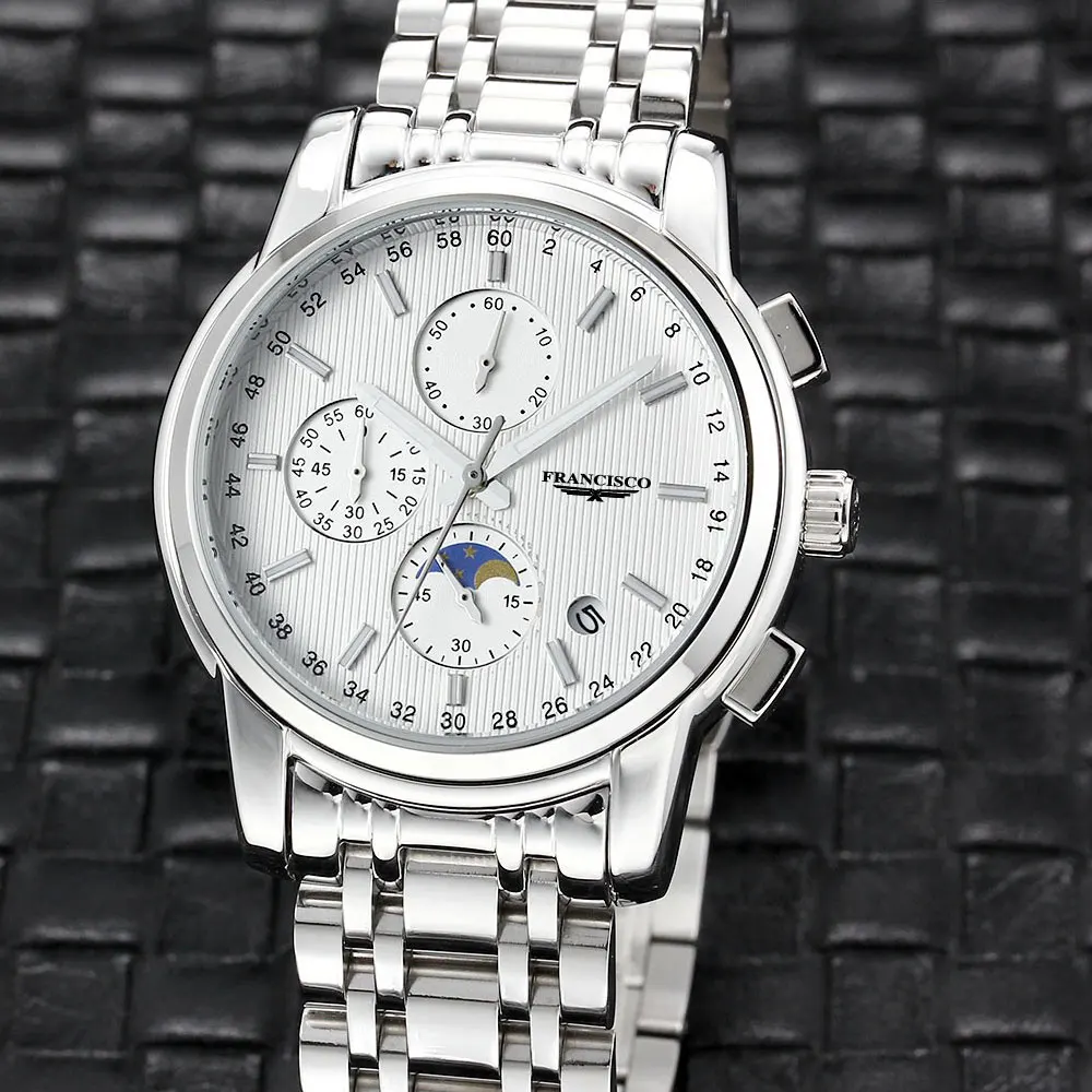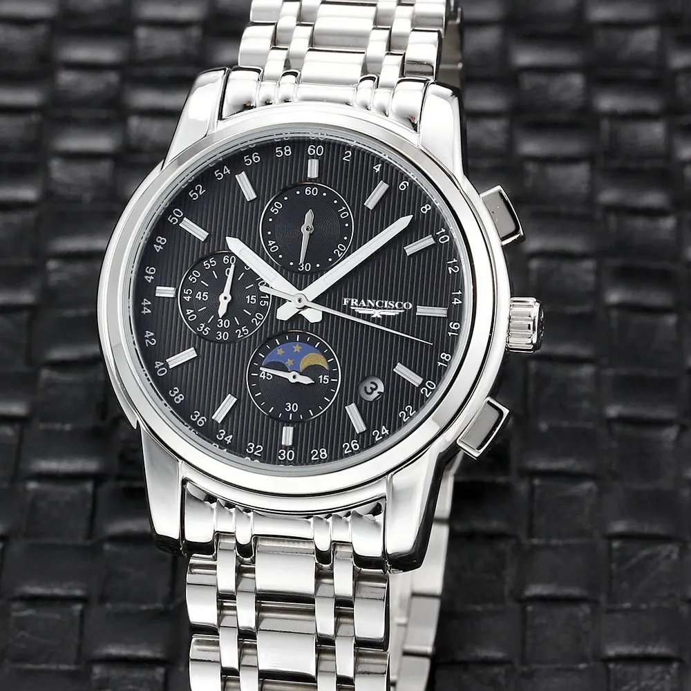 Мужские часы с хронографом, кварцевые часы из нержавеющей стали с большим циферблатом