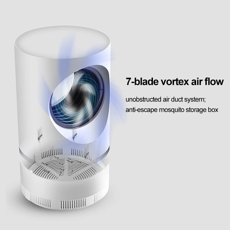 1. Всенаправленный светильник, ловушка комаров 2. 360 ° Москитная Ловушка окно 3. Высокая скорость ветра, Вихревой москитный аттракцион 4. Воронка анти-побега, ловушка окна 5. Съемный ящик для хранения комаров