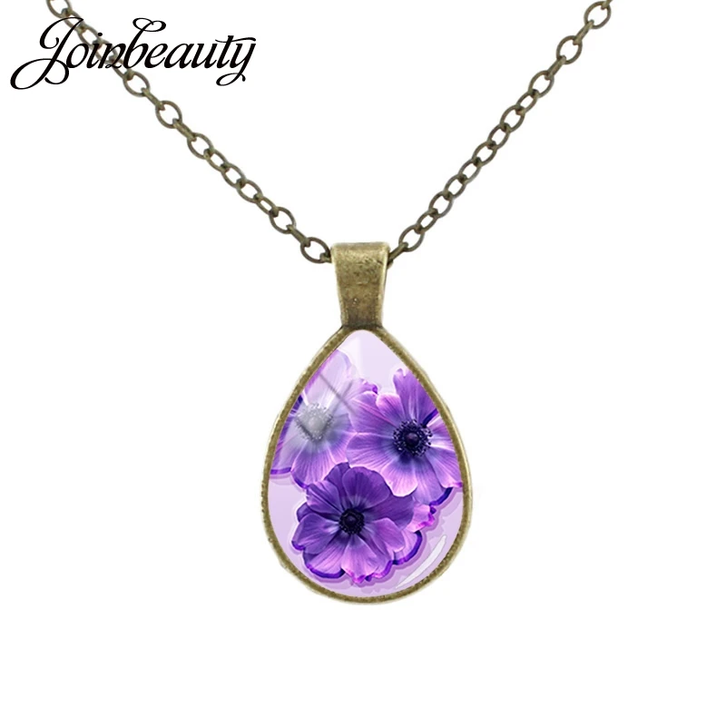 JOINBEAUTY красивое Лавандовое цветущее ожерелье с каплями цветов модное фиолетовое Цветочное Стекло кабошон кулон ювелирные изделия FL161