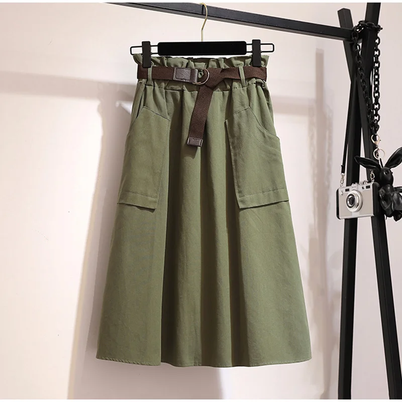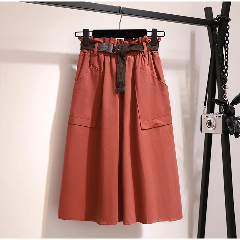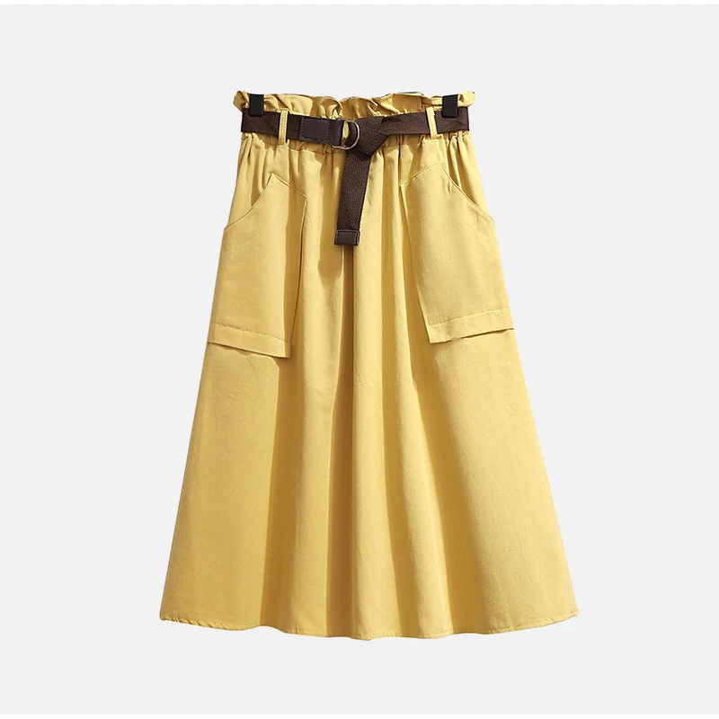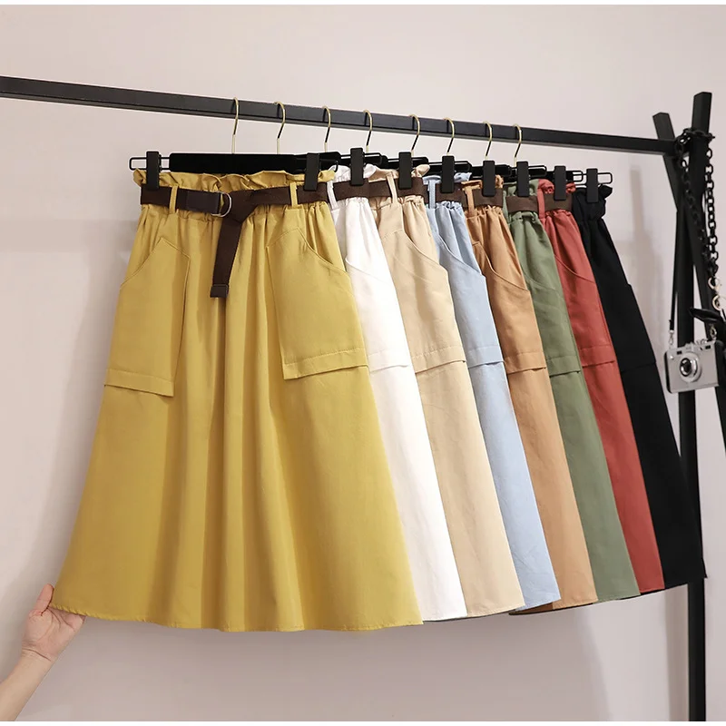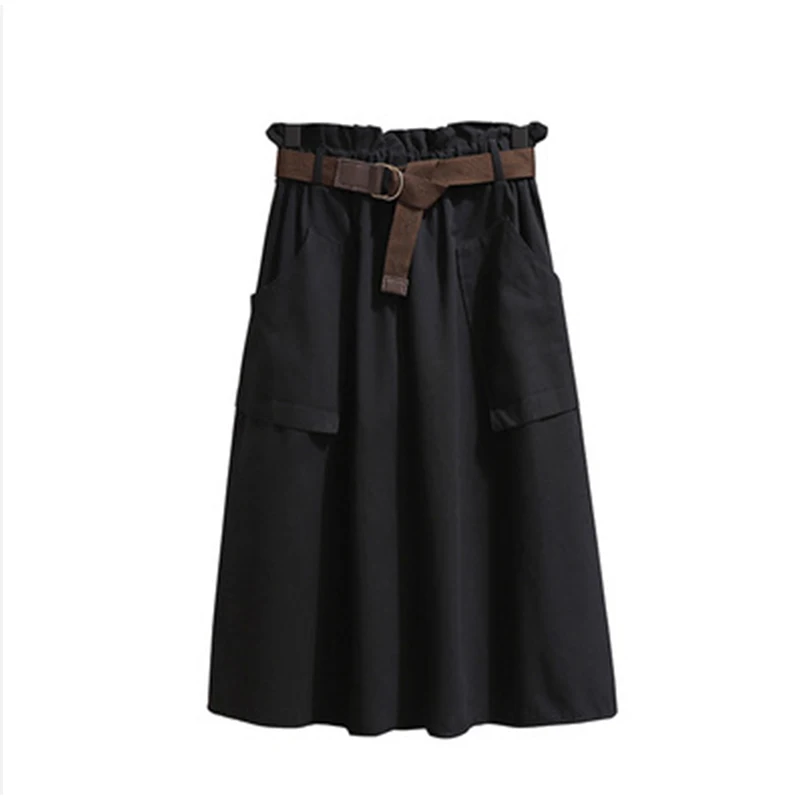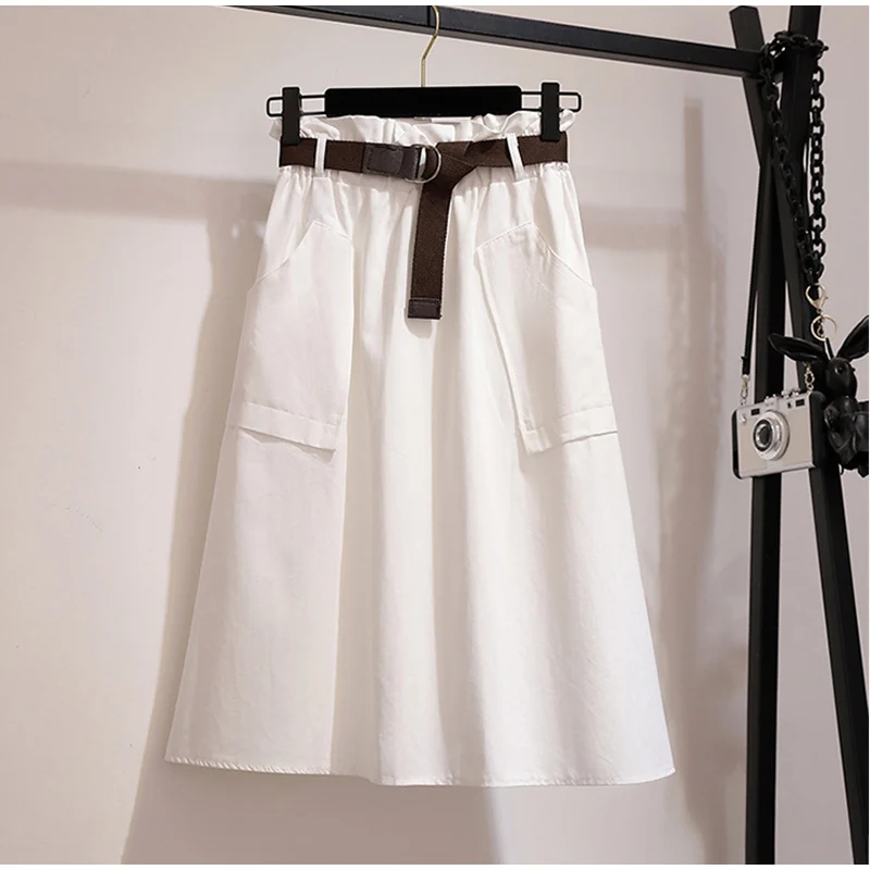 Женская эластичная юбка трапециевидной формы с завышенной талией и поясом, однотонная белая и черная Повседневная Милая юбка с карманами, 2020 Новая модная весенне-летняя одежда