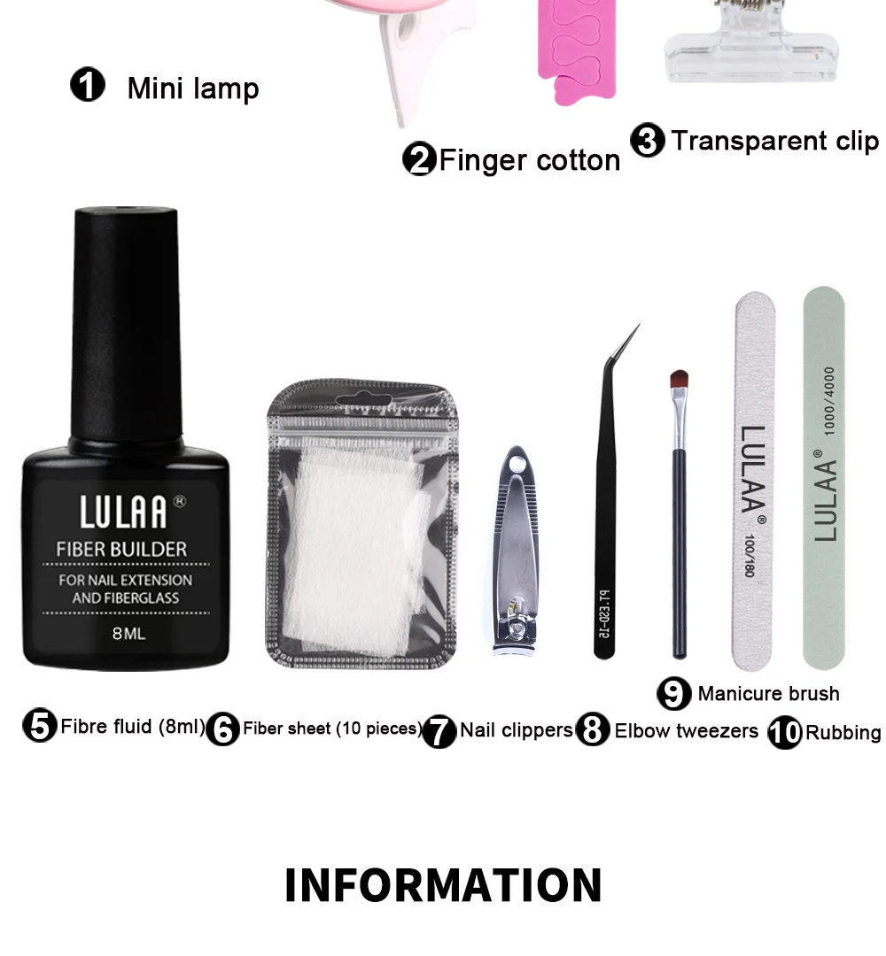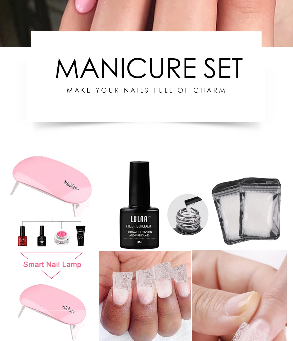 Как сделать fibernails: Шаг 1: после подготовки натуральных ногтей, нанесите Базовое покрытие и стекловолоконное покрытие Шаг 2: Сделайте уплотнение волокна выше и ниже УФ-гелем Шаг 3: Закрепите ногти под УФ/светодиодной лампой в течение 1-2 мин. через несколько секунд Нанесите зажимные зажимы для поддержания кривизны Шаг 4: Удалите зажимы с ногтей Шаг 5: техническое шлифование, это очень важно, Отсюда ногтя уже в естественном формат; Шаг 6: не протирайте верхнее покрытие, которое оставляет ноготь блестящим, и Помогает в долговечности ногтей!