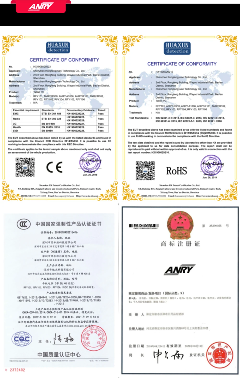 ANRY RS20 10 Inch Tablet Tablet 1280 x 800 Andorid 8.1