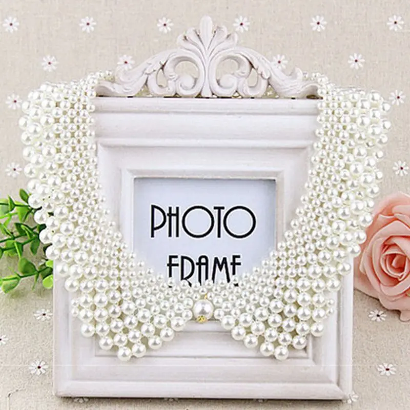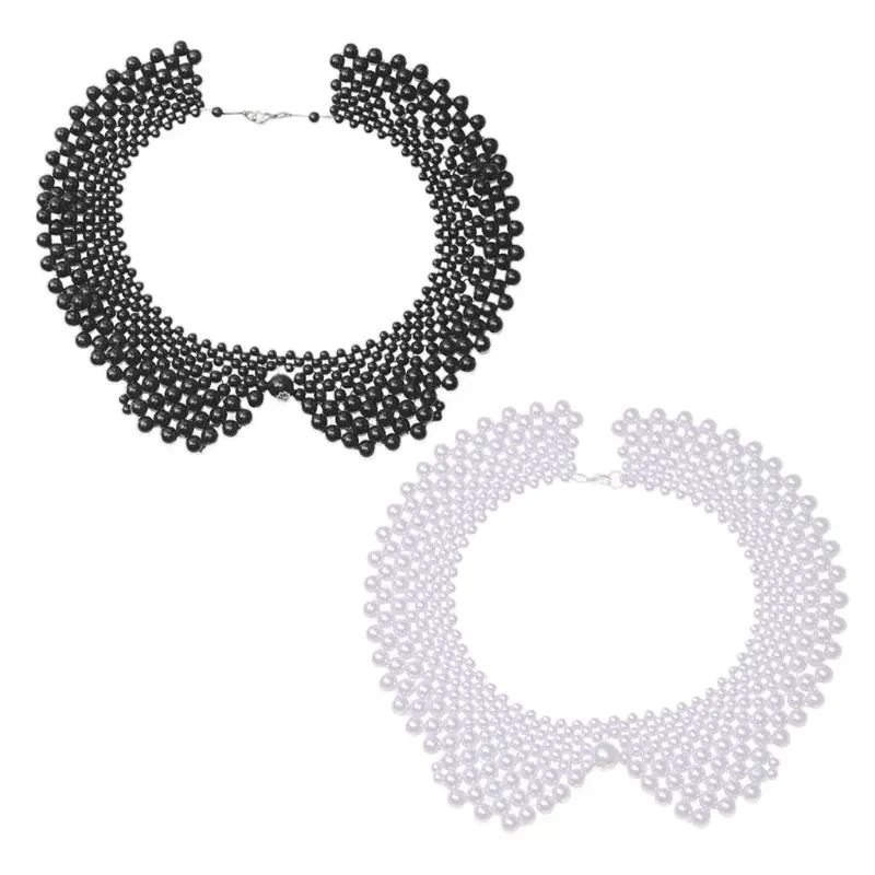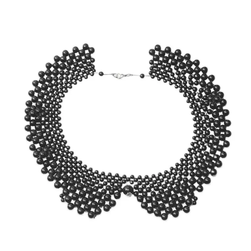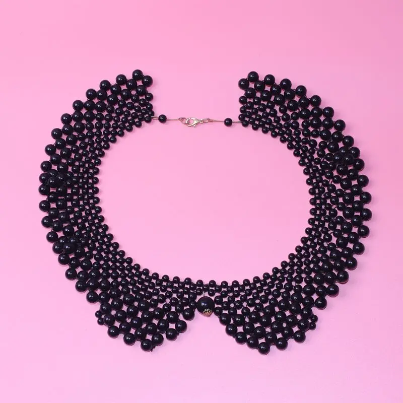 Тканая шаль ручной работы с бисером, многослойная имитация жемчуга, ювелирный дизайн, с большим кулоном из искусственного жемчуга в центре.