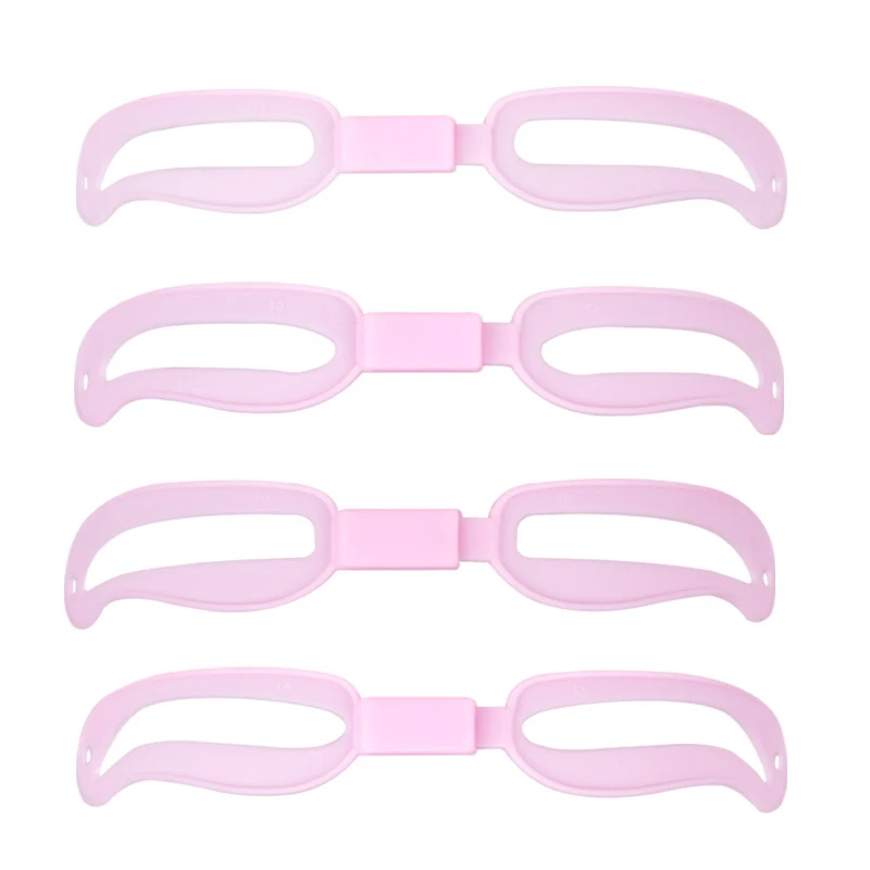 Приятная на ощупь-Наши трафареты для бровей изготовлены из высококачественного АБС-материала, более удобные, прочные и мягкие, с эластичным фиксированным ремешком, вы можете носить шаблон для бровей вокруг лба, не беспокоясь, что он упадет. Это не принесет вам никакого дискомфорта во время формирования бровей.