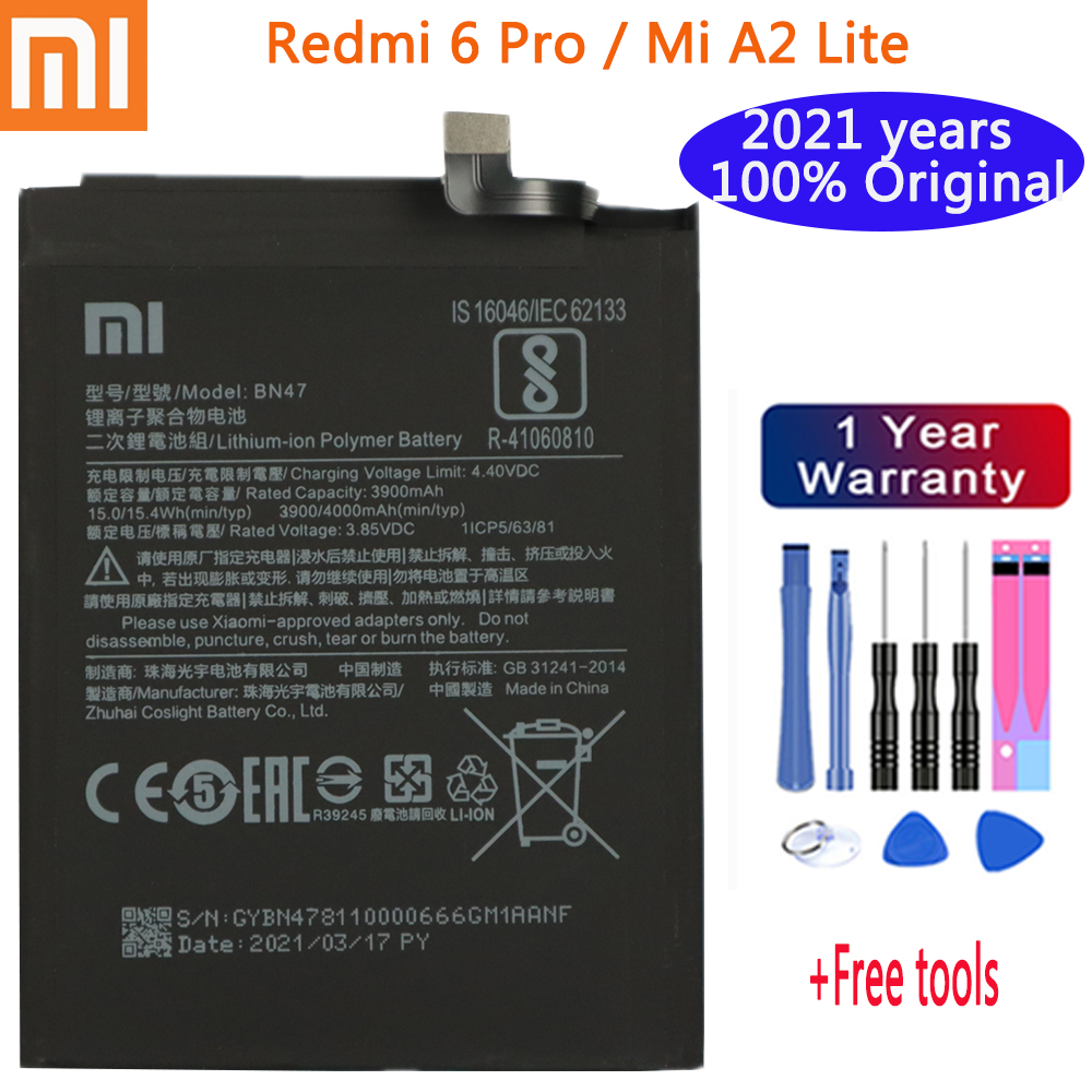 100% Новый оригинальный аккумулятор BN47 4000 мАч С клеевой наклейкой для Xiaomi Redmi 6 Pro 6Pro/для Xiaomi Mi A2 Lite батарея + Инструменты