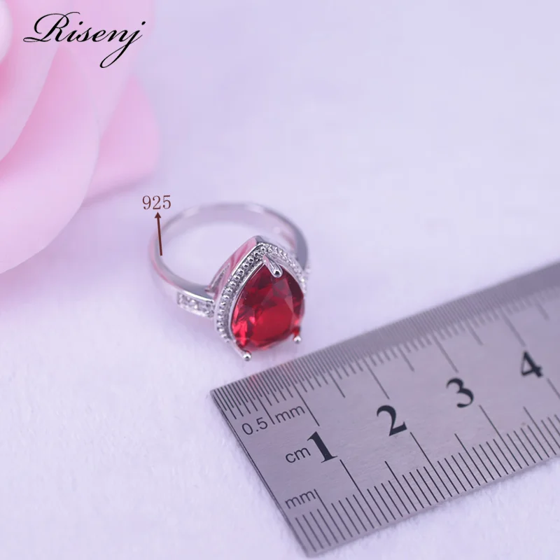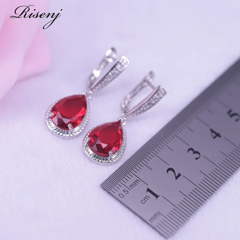 Lucky Colors ювелирное изделие с красными камнями, наборы из стерлингового серебра 925 пробы, милые ожерелья с каплями воды, кольца, серьги для женщин, эффектные ювелирные изделия
