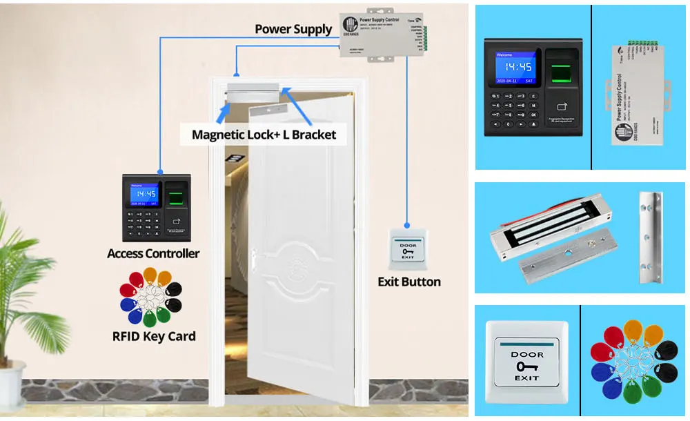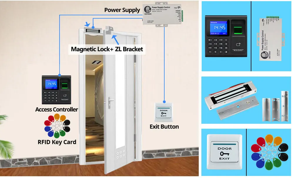 Kit8: подходит для деревянной, металлической, стеклянной двери. Нужен кронштейн ZL.Посылка: клавиатура управления доступом + блок питания + магнитный замок 180 кг + кронштейн ZL + кнопка выхода + 10 брелоковЕсли ваша дверь открыта из помещения, то нужно добавить кронштейн ZL.Размер кронштейна Д: 170*34*25 мм (Д/Ш/В)Размер Z-скобы: 138*45*45 мм (Д/Ш/В)