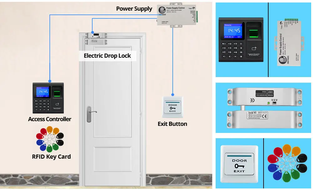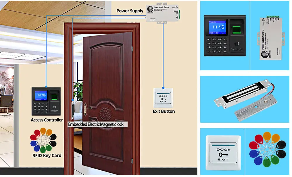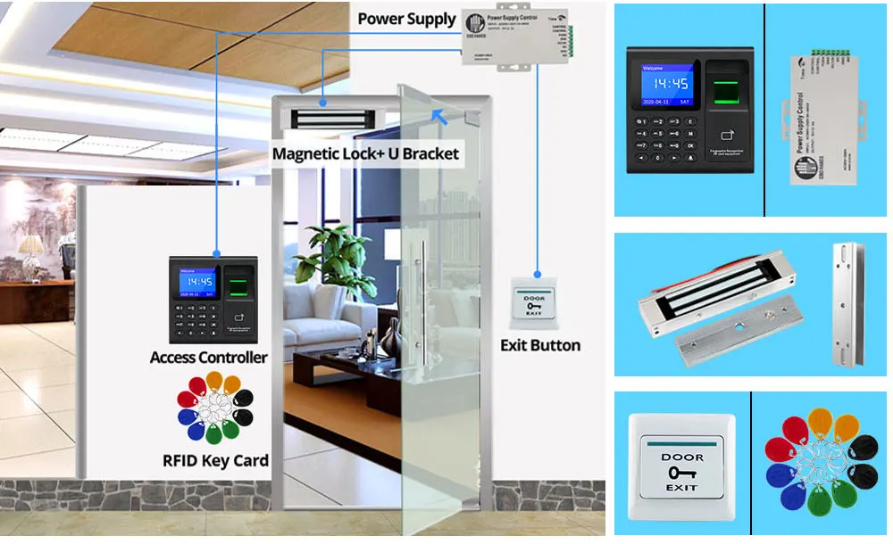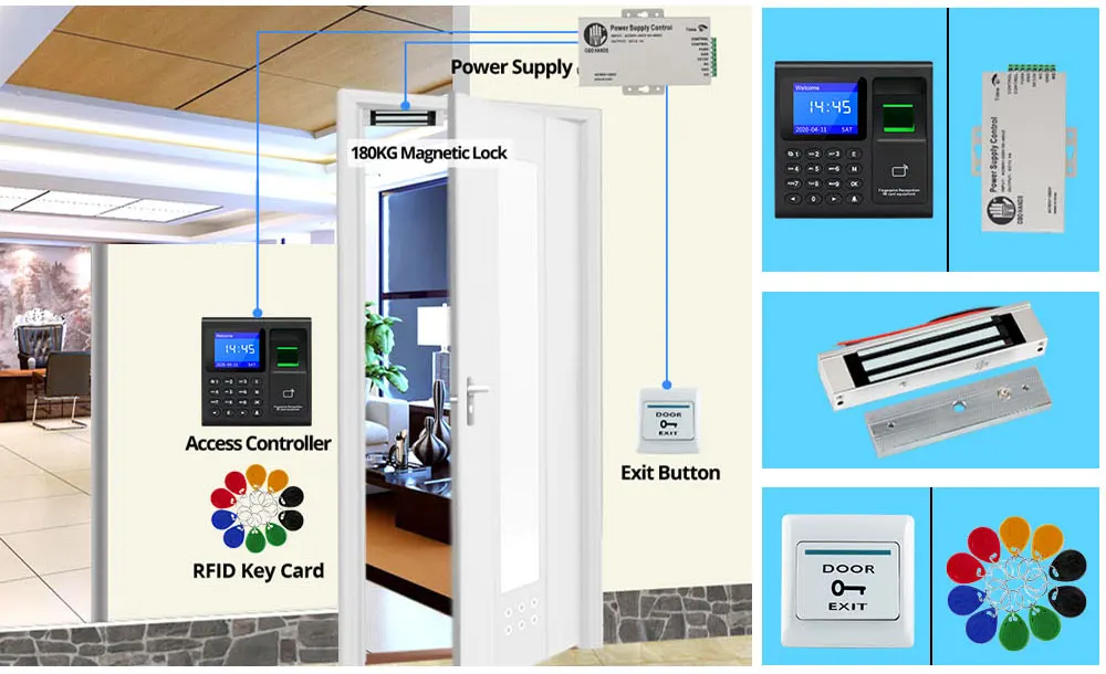 Полный комплект входной охранной системы для деревянных дверей, железных дверей и стеклянных дверей, который вы можете выбрать в соответствии с типом вашей двери. Если вы не знаете, как выбрать, пожалуйста, свяжитесь с нами после фотографирования двери, спасибо.Описание товараКонтроллер доступа:Характеристики продукта:1) 1,8 дюймовый TFT-экран.2) строго следуйте стандарту продукции национальной безопасности.3) Использование энергосберегающего датчика отпечатков пальцев и функции управления питанием делает продукт идеальным.4) 3 способа идентификации посещаемости: отпечаток пальца, пароль, RFID-карта.5) Поддержка загрузки USB-флеш-накопителя.6) напоминание об гуманизированном языке.7) подходит для входов и выходов в офис, фабрику, гостиницу, школу и т. Д.8) редакторы методов ввода T9, на названии машины, отделении, частоте и другой информации, можно непосредственно выводить отчеты о посещаемости, пользовательская работа проста9) Поддержка английского и китайского языков.10) имеет Wiegand26/34 вход/выход, релейный выход, дверной звонок.11) Поддержка сигнализации взлома.Экран дисплея: 1,8 дюймовый HD ЖК-экранЕмкость пользователя: 1000 шт.Емкость отпечатков пальцев: 1000 шт.Емкость пароля: 1000 шт.Емкость карты: 1000 шт.Емкость записи: 100000 артикуловСпособ связи: U-дискСпособ проверки: отпечаток пальца, пароль, картаЗагрузка/загрузка данных U-диска: ПоддержкаЯзыковое Отображение: китайский, английский (необязательно)Размер машинки: 90 (Д) × 90 (Ш) × 28 (В) мм1,8 дюймовый HD ЖК-экранЛегко программировать с помощью дисплея. Отображение времени и даты на дисплее в режиме ожидания