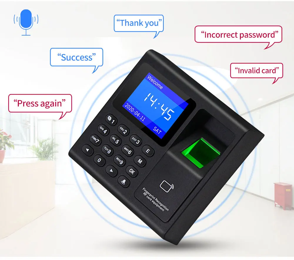 Часы посещаемости можно управлять 3 способамиОтпечаток пальца/RFID-карта/пароль
