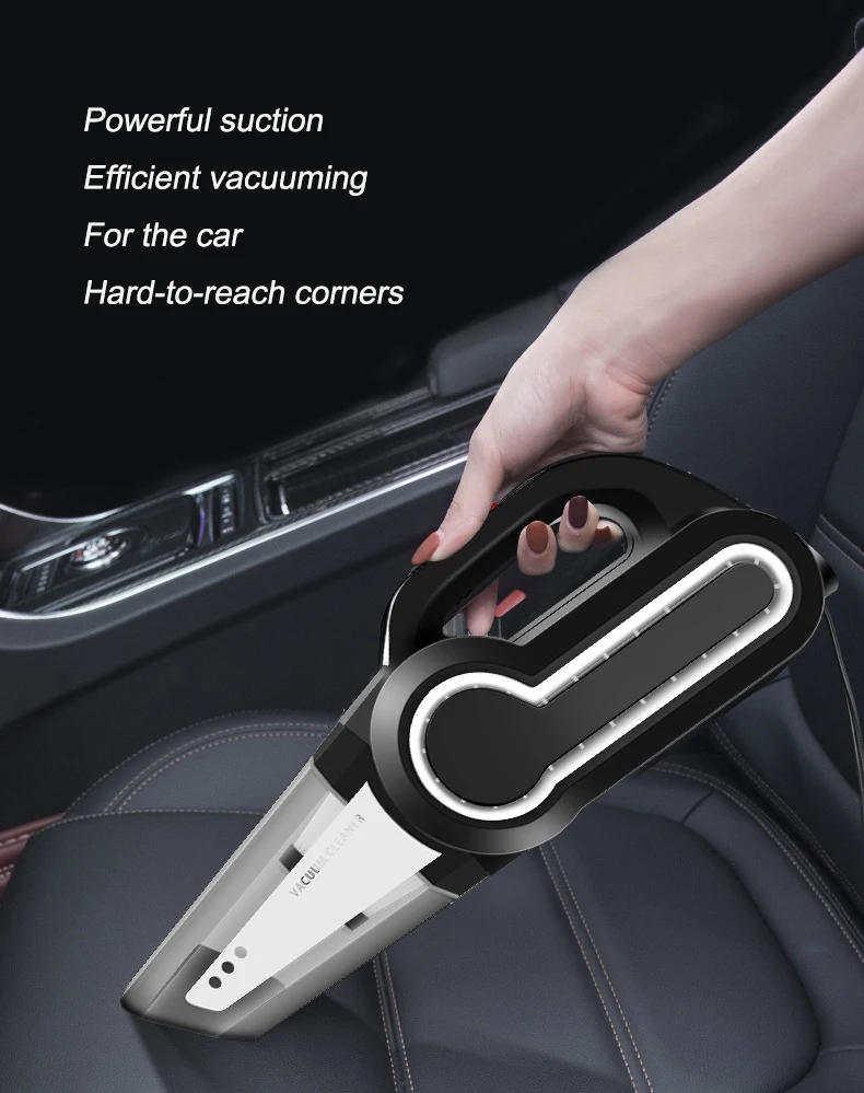 1. 4 in 1 Multifunction Vacuum Cleaner: Vacuum Cleaner+Inflator+LED Lighting+Tire Pressure Gauge. 2. The LED light makes visibility at night clear and convenient. 3. Fast Inflation: Powerful power quickly increases the inflation speed. After setting the value, turn on the switch and stop automatically when the inflation is full. 4.Double Layer Filtration System: Outer metal mesh filtering large particle dust and residue, inner HEPA mesh filtering small dust, preventing secondary pollution.