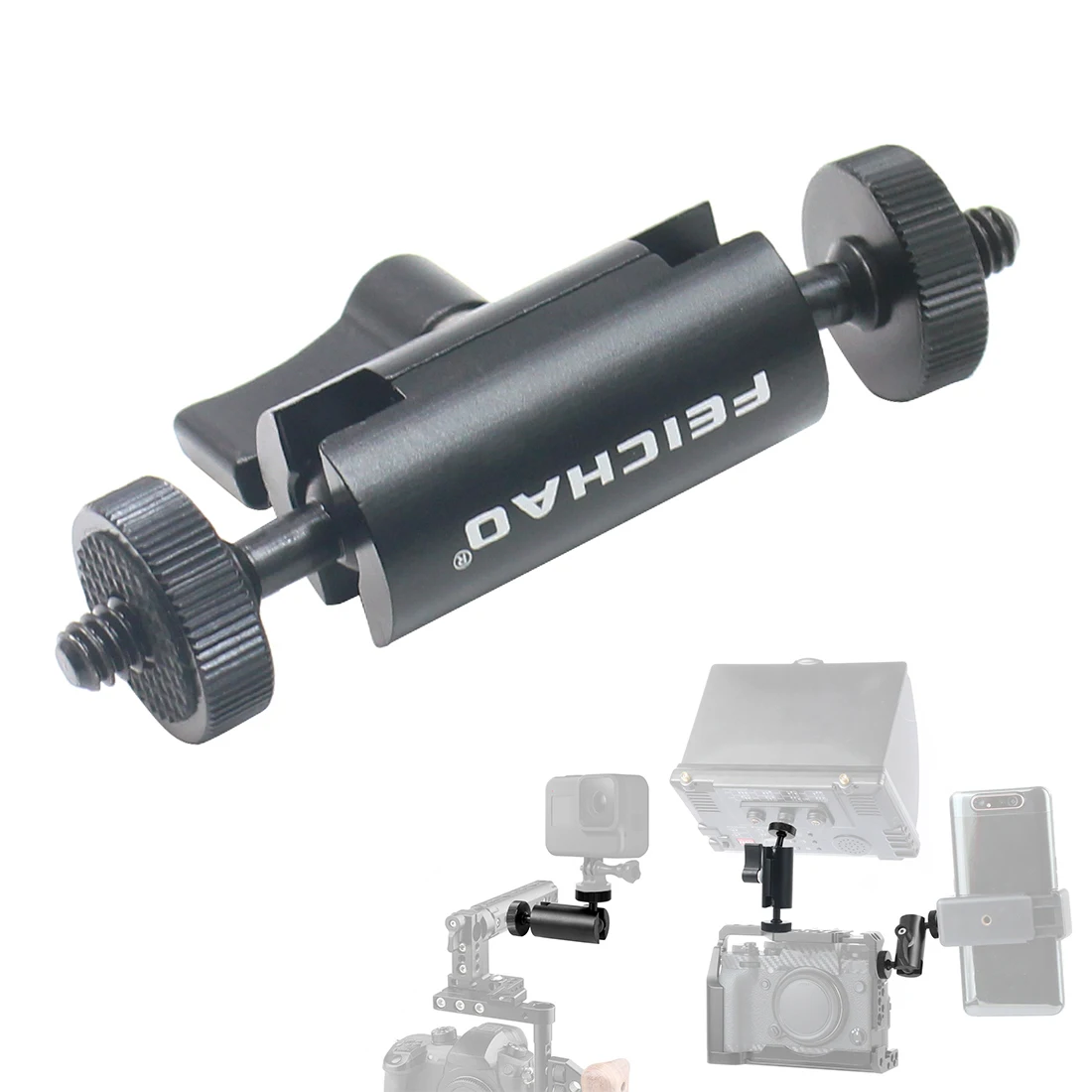 7. Двойные шаровые головки с винтом 1/4 дюйма, используются в качестве разъема для камер, мониторов, светодиодный светильник для видео, микрофон, клетка для камеры и так далее