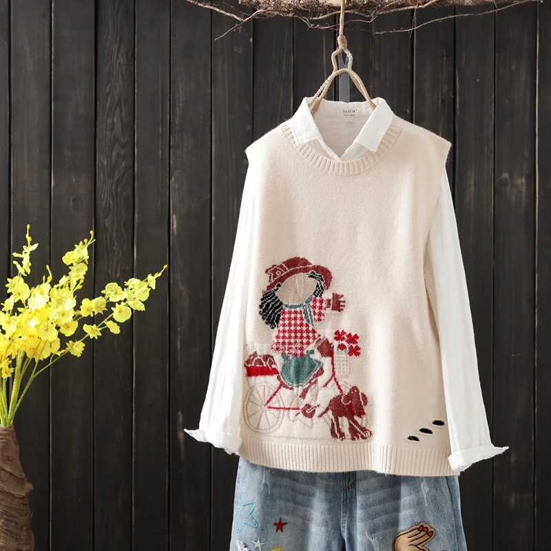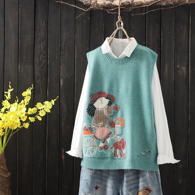 LEDEDAZ/модный вязаный жилет без рукавов с круглым вырезом; Корейский вязаный жилет с нашивкой; Байкерский свитер с рисунком для девочек; Повседневный пуловер; Жилет