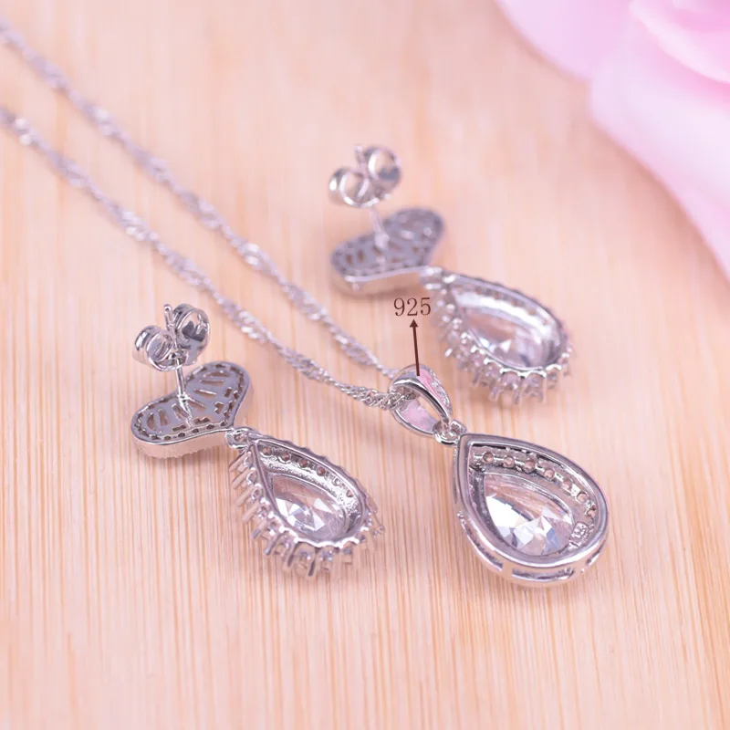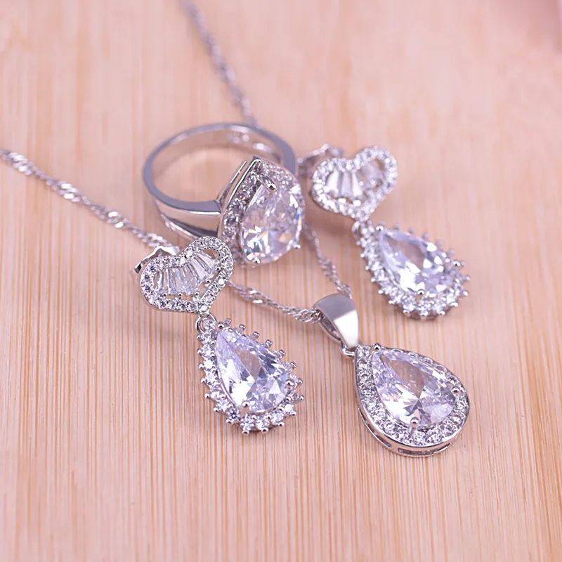 Risenj большая капля воды австрийский кристалл & кубический циркон 925 стерлингового серебра набор украшений для женщин серьги-гвоздики кольцо ожерелье набор