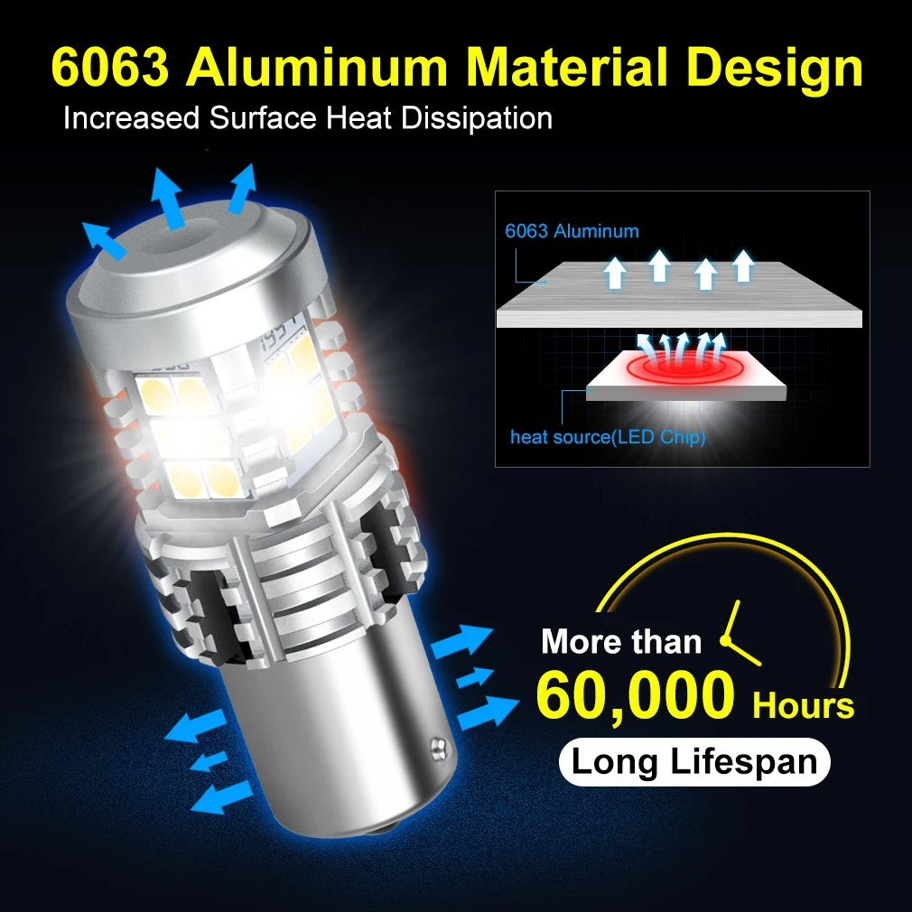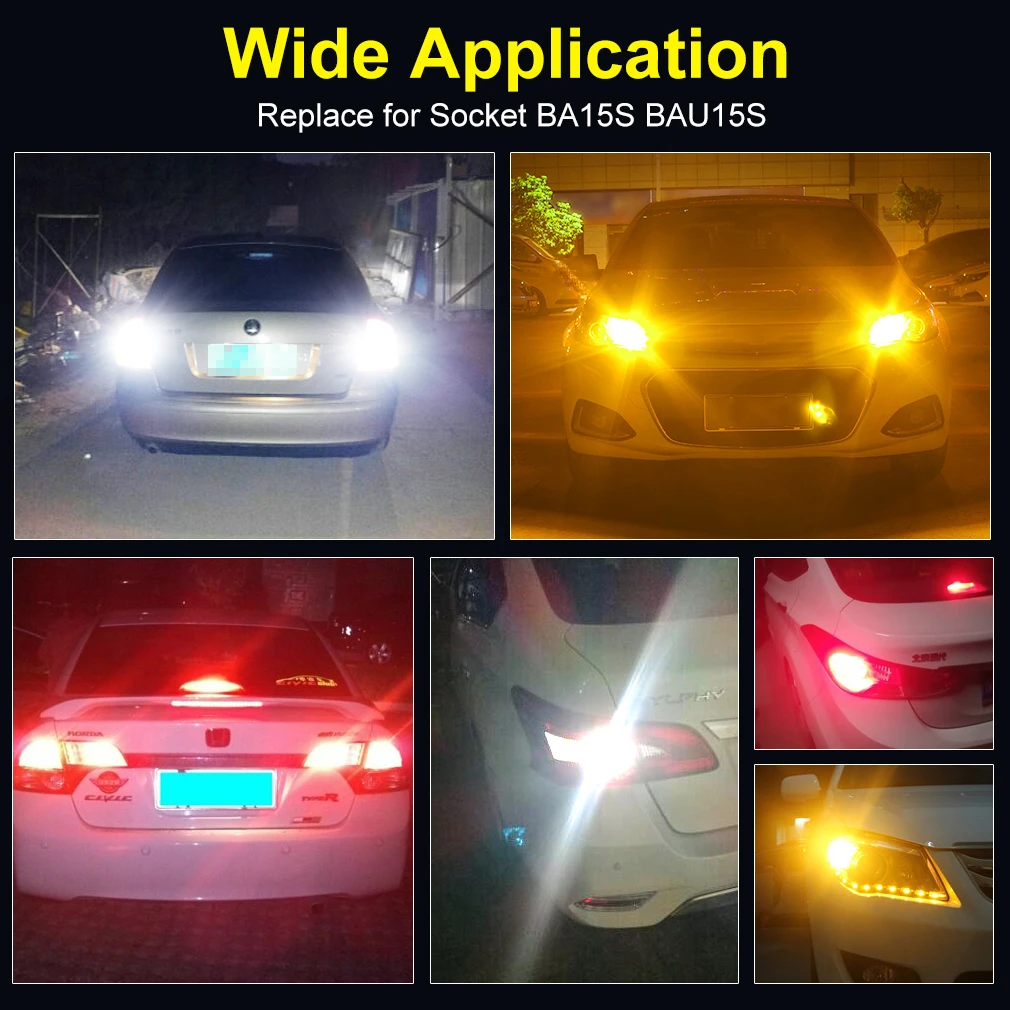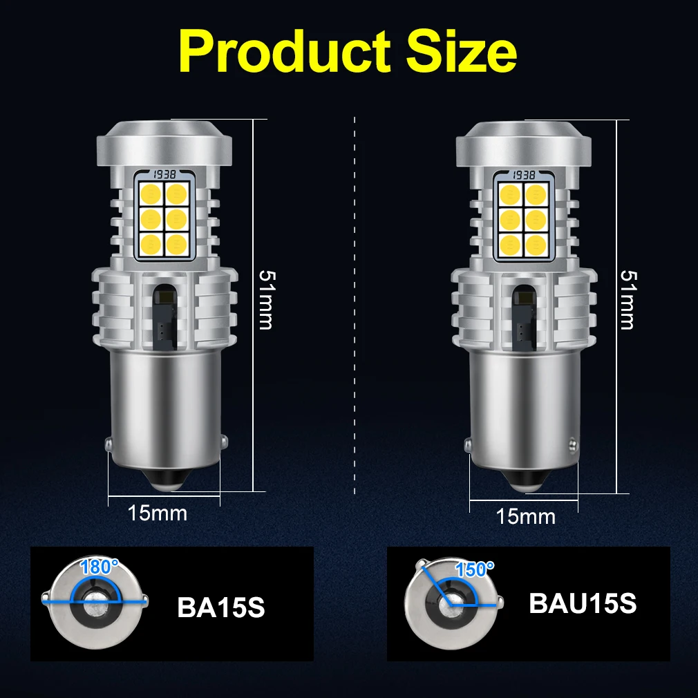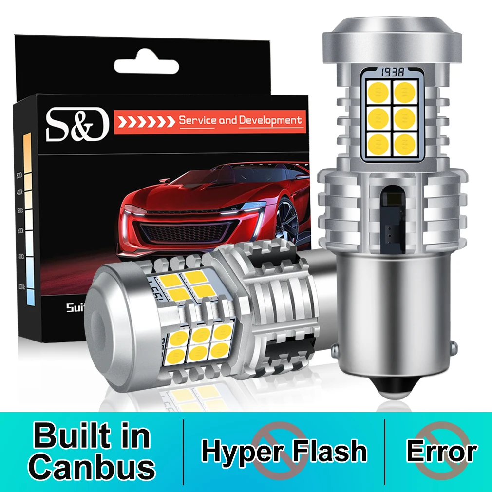 2x Canbus безошибочный светодиодный светильник 1156 BA15S P21W светодиодный BAU15S PY21W лампа для автомобиля с сигналом поворота Янтарный 12-24 в 21 Вт 3030 без гипервспышки