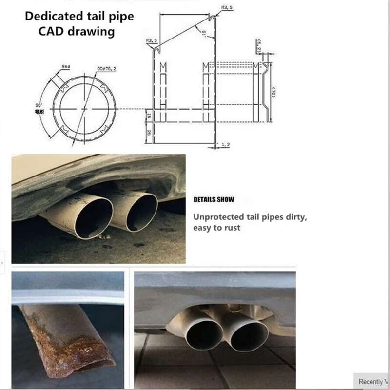 Диаметр трубы 7,6 см Для VW CC 2010 2011 2012 2013 2014 2015 2016 Для VW Passat 1,8 T 2,0 T 2011 2012 2013 2014 2015 Для VW Tiguan 1,8 T 2,0 T 2011 2012 2013 2014 2015 Для Audi A3 A1 Для Audi A4 B8 2009-2016 (пожалуйста, подтвердите размер этого автомобиля) диаметр составляет 76 мм Для Audi Q5 2009-2012 Для VW Magotan 1,8 T 2,0 T Для Audi TT 2009-2011 (пожалуйста, подтвердите размер этого автомобиля) 76 мм Для Audi A5 хэтчбек Для Honda Civic И так далее Описание продукта: Название продукта: крышка выхлопной трубы автомобиля Материал: нержавеющая сталь Цвет: серебристый/синий/черный/Карбон Посылка: 2 шт. Назначение: декоративная защита панели, предотвращение коррозии Инструкция по установке: Очистите поверхность автомобиля, сохраните его сухим, легко устанавливайте без сверления, без повреждений Пожалуйста, перед размещением заказа убедитесь, что модель выхлопной трубы вашего автомобиля совпадает с моим изображением. Пожалуйста, убедитесь, что стиль вашего автомобиля такой же, как на изображении ниже, этот продукт был изготовлен на заказ для автомобиля! Изображения изделия: