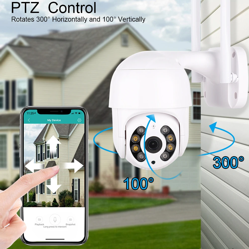 -Поставляется с функцией ночного видения, и поставляется с функцией поворота панорамирования (355 градусов влево и вправо, 90 градусов вверх и вниз).