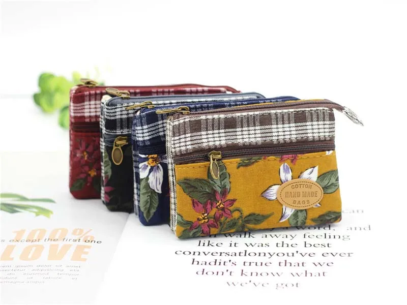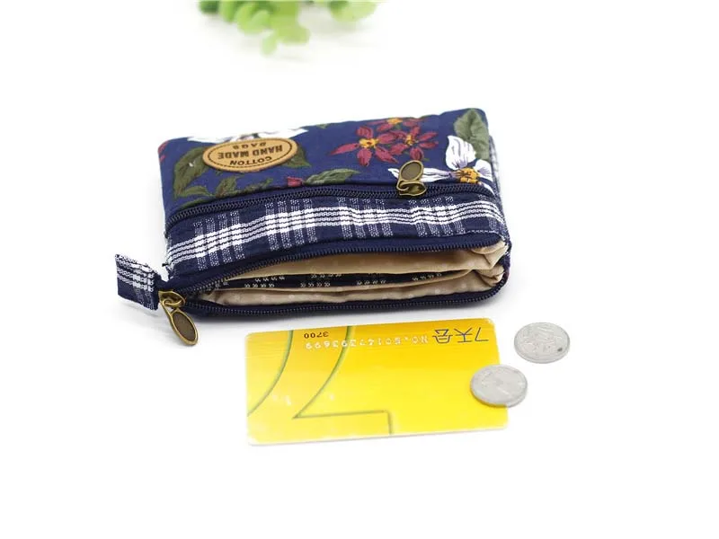 Новинка портмоне, декорированное цветами многослойная хлопковая ткань женский бумажник с отделениями для карт маленькая сумка для мелочи ретро холщовая женская сумочка