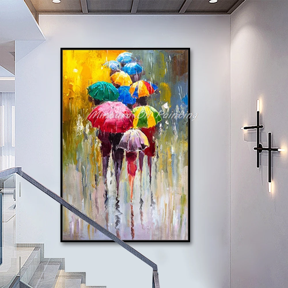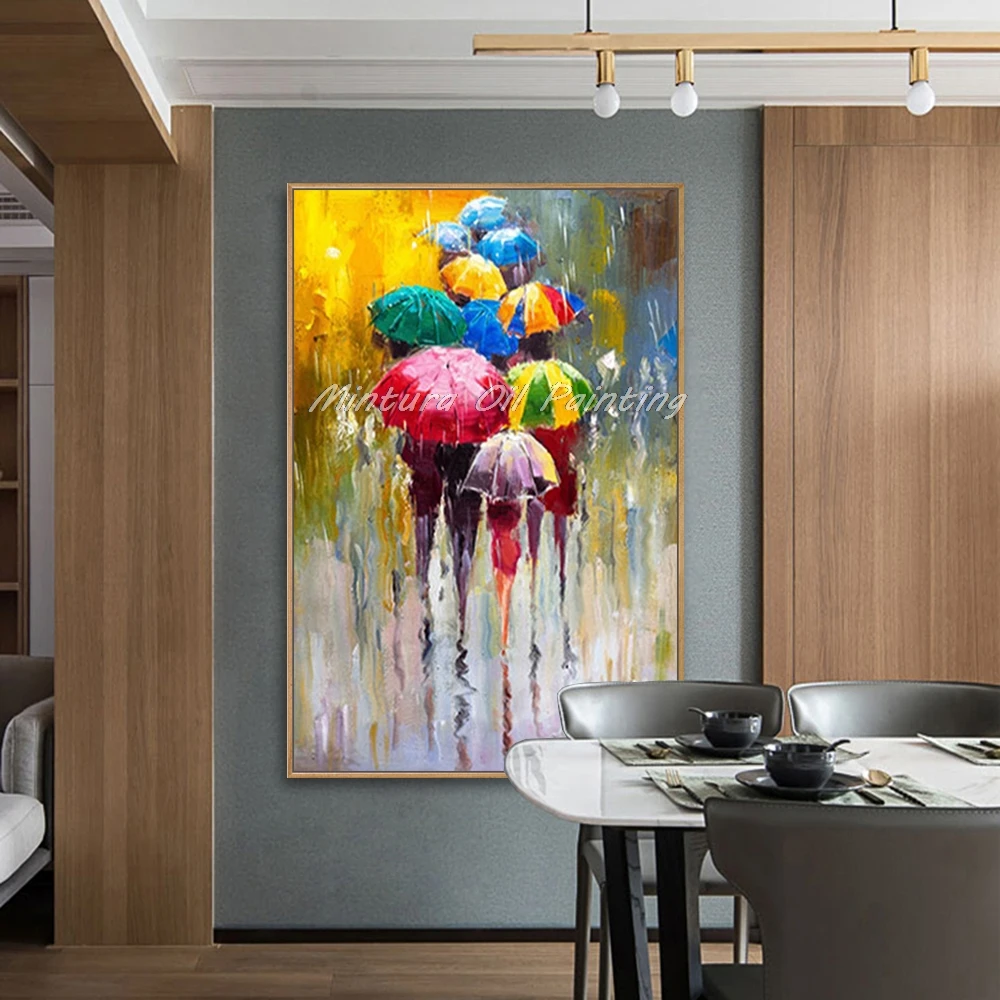 Толпа в дождь декор для отеля настенный арт без рамки.