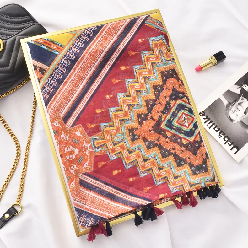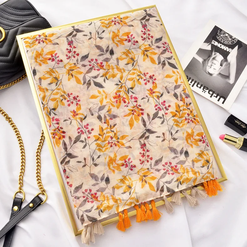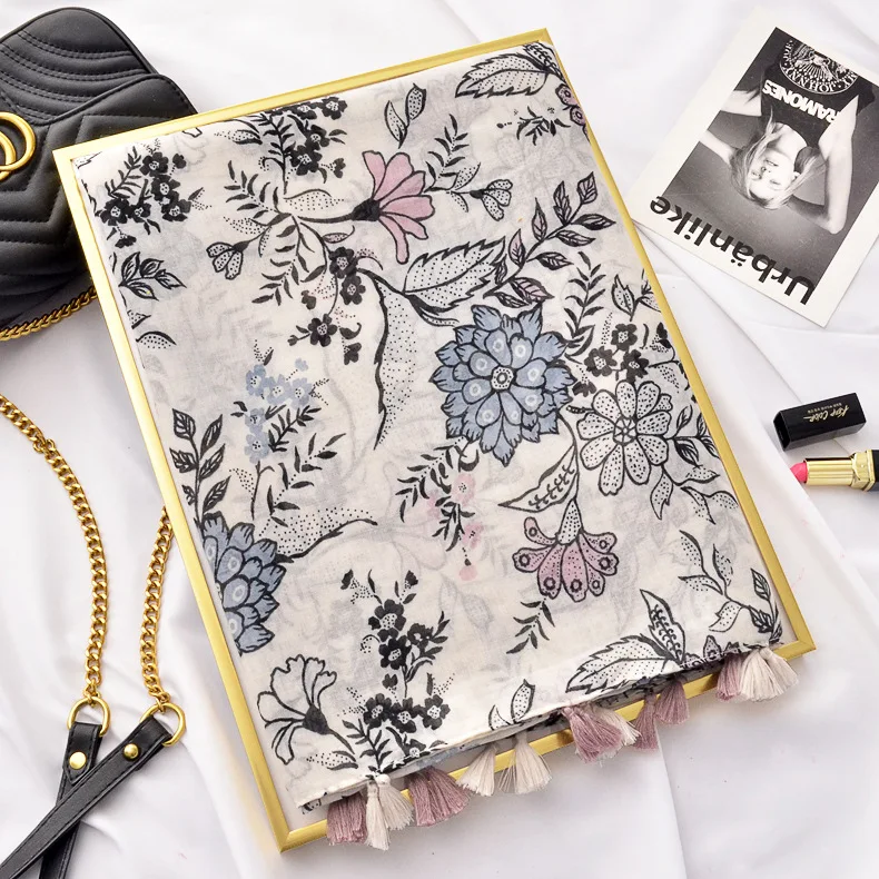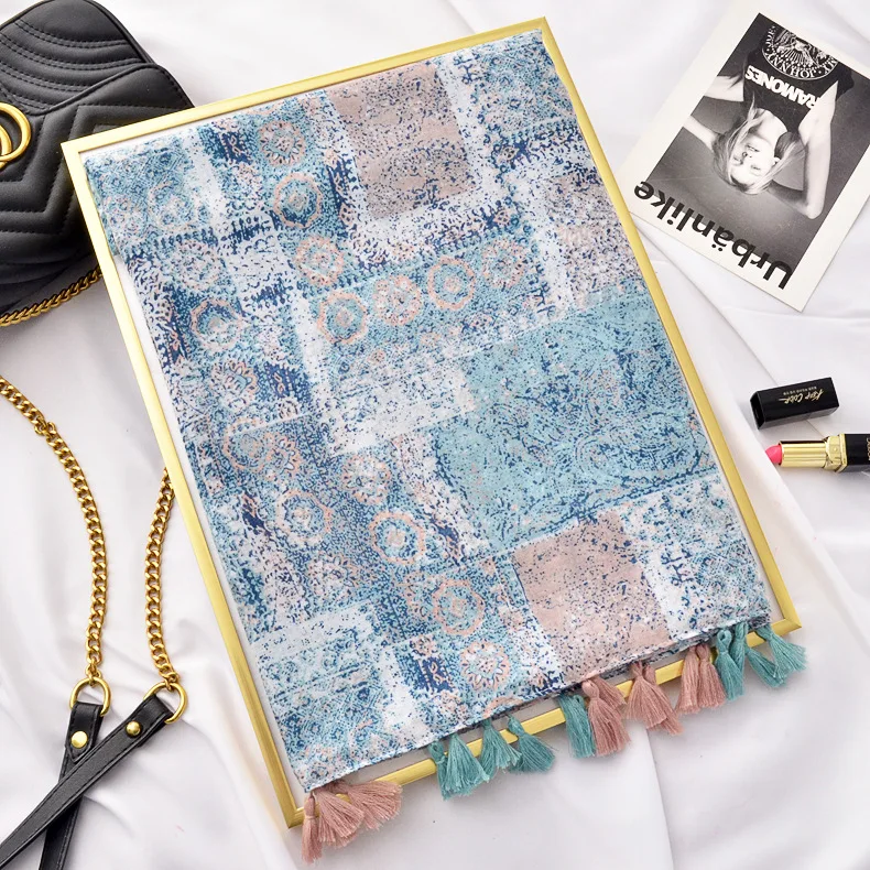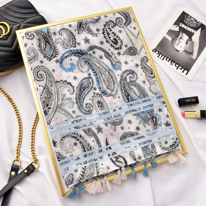 Новый дизайн модный синий и белый фарфор Печать Хлопок и лен шарф шаль женский пляжный Понч с бахромой кисточкой