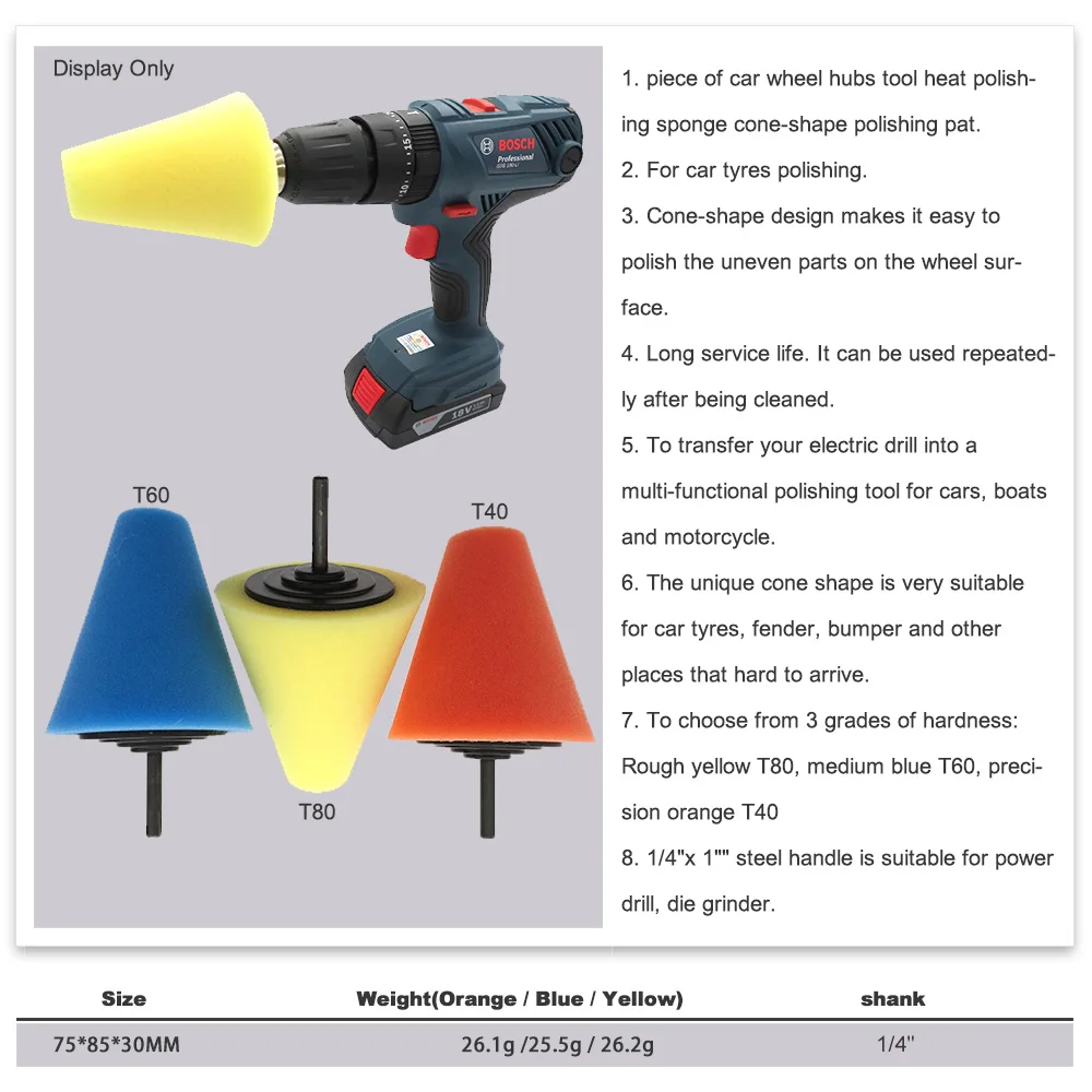 3 шт. 80 мм M10 коническая Губка Полировальные накладки, набор инструментов для полировки воском автомобиля Автомобильная полировальная подушка