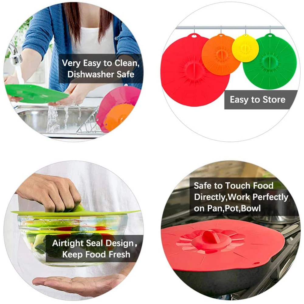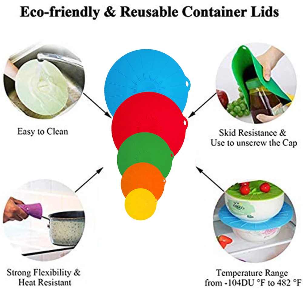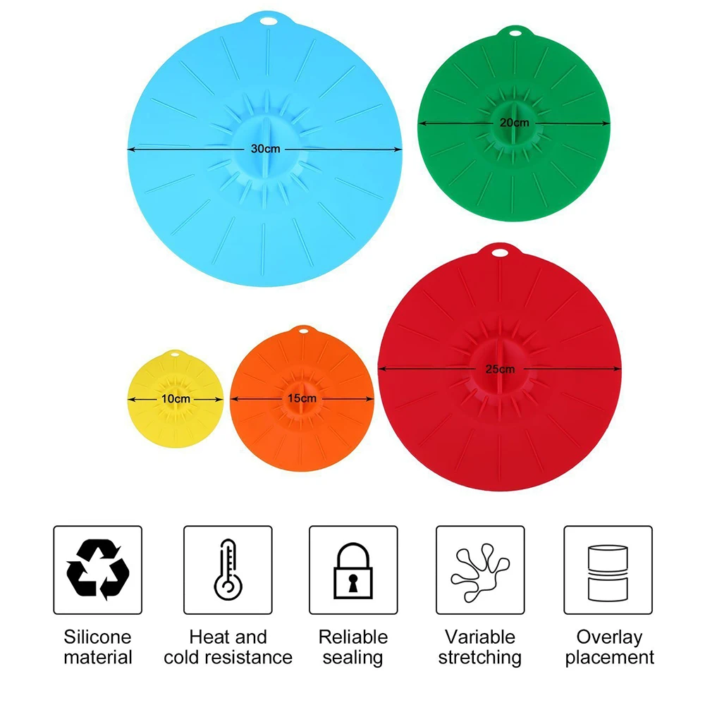 Silicone Cover Set 5PCS For Pot Pan Food Wrap Covers Airtight Food Fresh-keeping Covers Heat-resistant Kitchen Kitchenware Lids