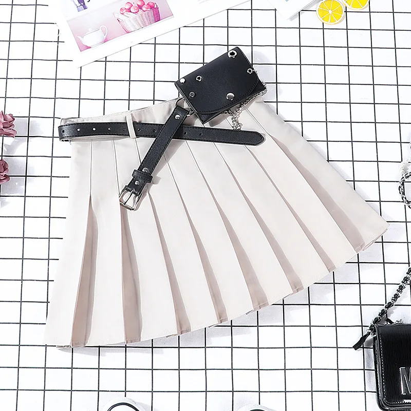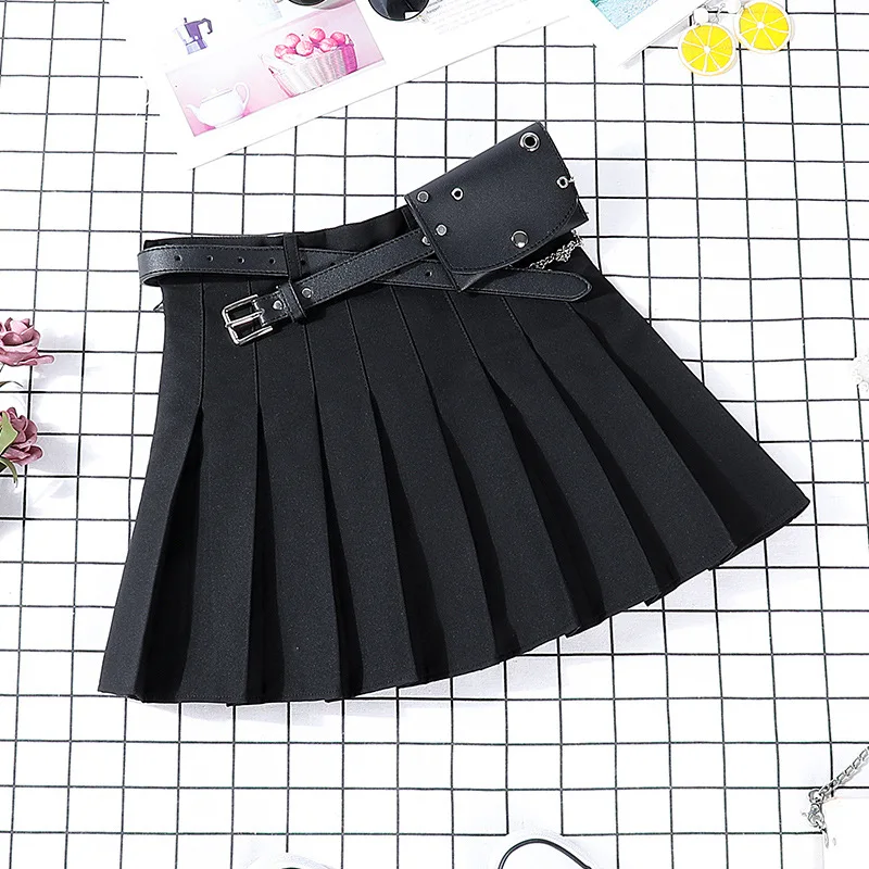Женская плиссированная юбка с поясом, модная летняя юбка трапециевидной формы для девушек, мини-юбка с высокой талией, уличная Женская юбка Harajuku