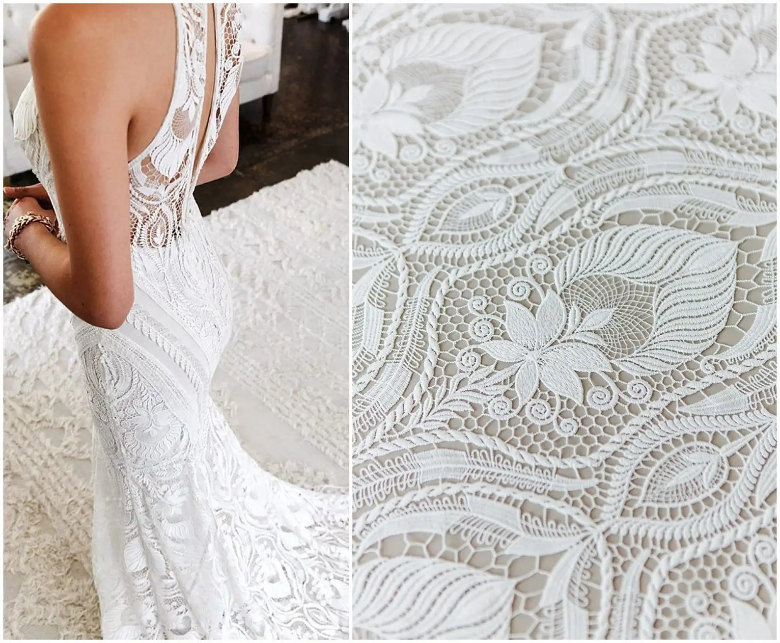 Guipure boho bridal lace, Boho wedding dress fabrics, Crochet lace fabric, bridal embroidered lace fabric, wedding dress lace