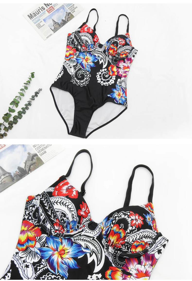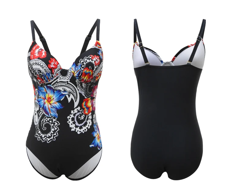2020 Summer Print Rainbow Large Size Swimwear With Push Up Plus Size One Piece Swimsuit Closed Female Body Swim Bathing Suit Women Beach Pool wear