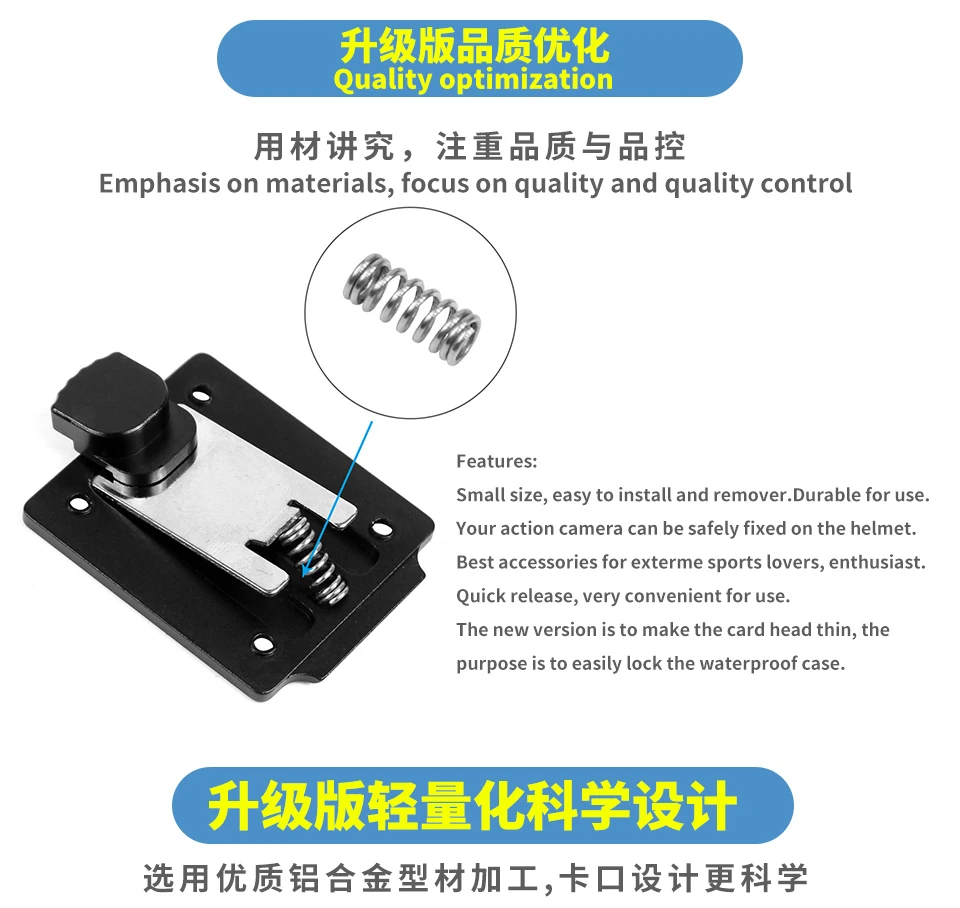 Это профессиональное и практичное крепление для камеры на шлем, с помощью этого алюминиевого фиксированного крепления вы можете установить камеру и отрегулировать ее положение для оптимальной перспективы.