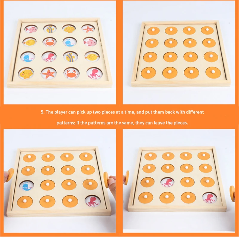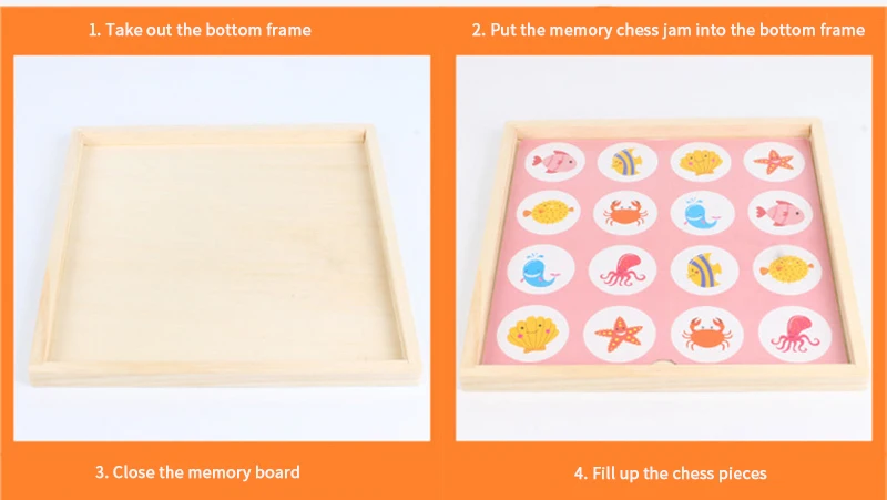 Игра в шахматы на память 1. Вынуть нижнюю рамку; 2. Положите Шахматное варенье на память в нижнюю рамку; 3. Закрыть плату памяти; 4. Заполните шахматные фигуры; 5. Игрок может подобрать две штуки за раз, и положить их обратно с разными узорами; Если узоры одинаковые, они могут оставить кусочки. Как играть с бусинами: распознавание цвета, классификация, обучение использованию палочек для еды, зажимов, ложек, координация рук и глаз; Укладка, Творческое моделирование, воображение