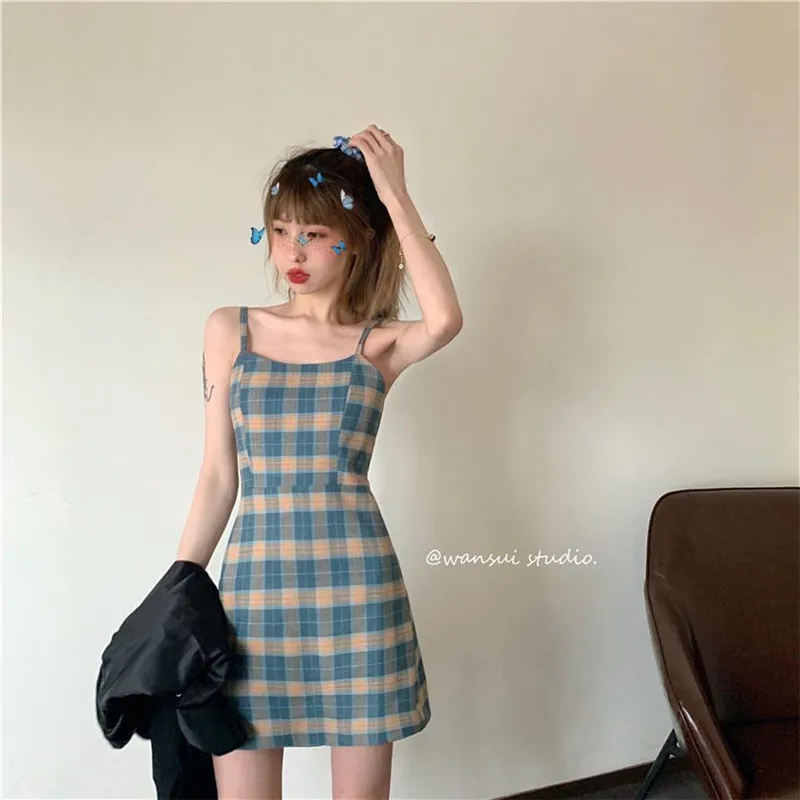 Лето 2020 новый стиль французское платье в клетку женское приталенное облегающее платье мини