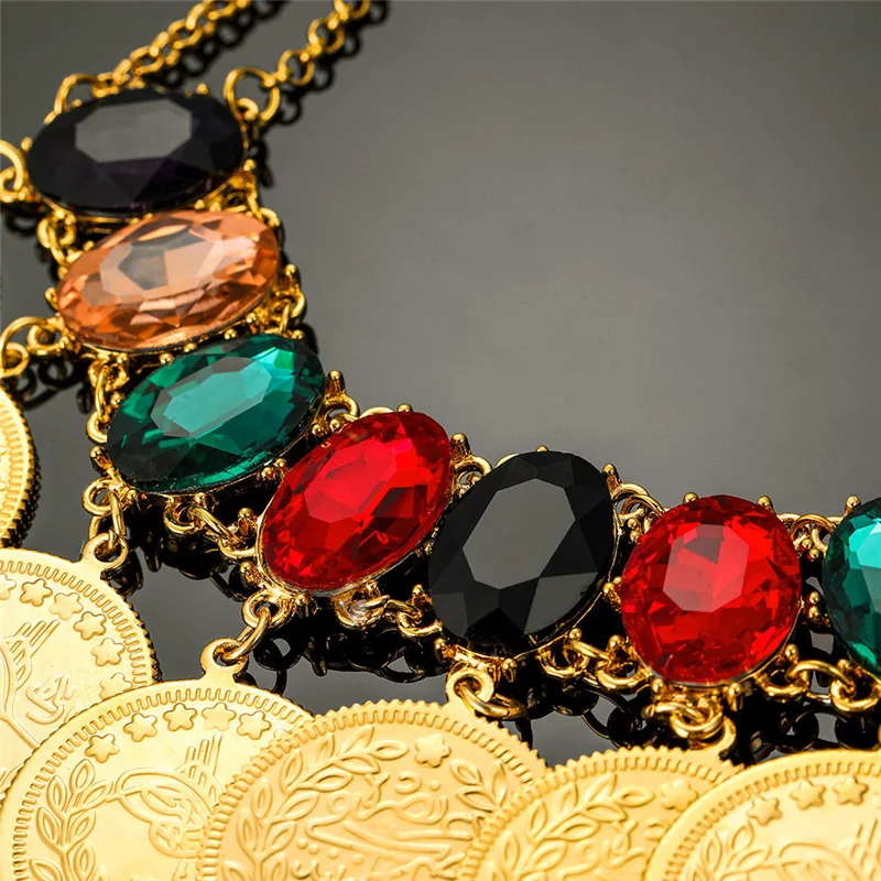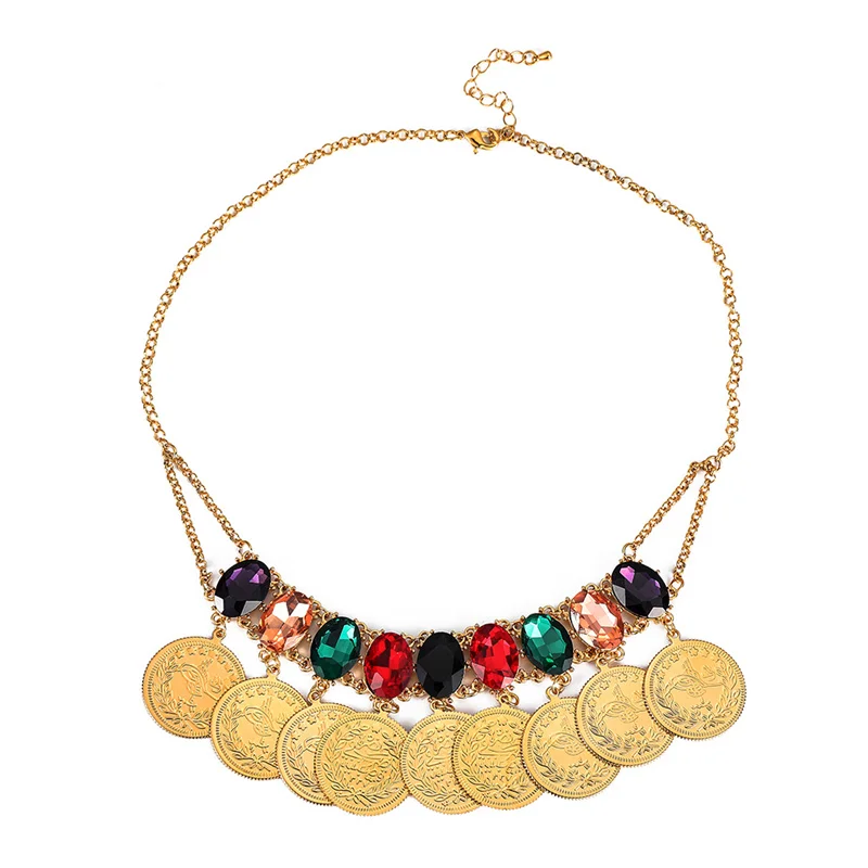 Ожерелье с подвеской в виде монета золотого цвета с кристаллами для женщин
