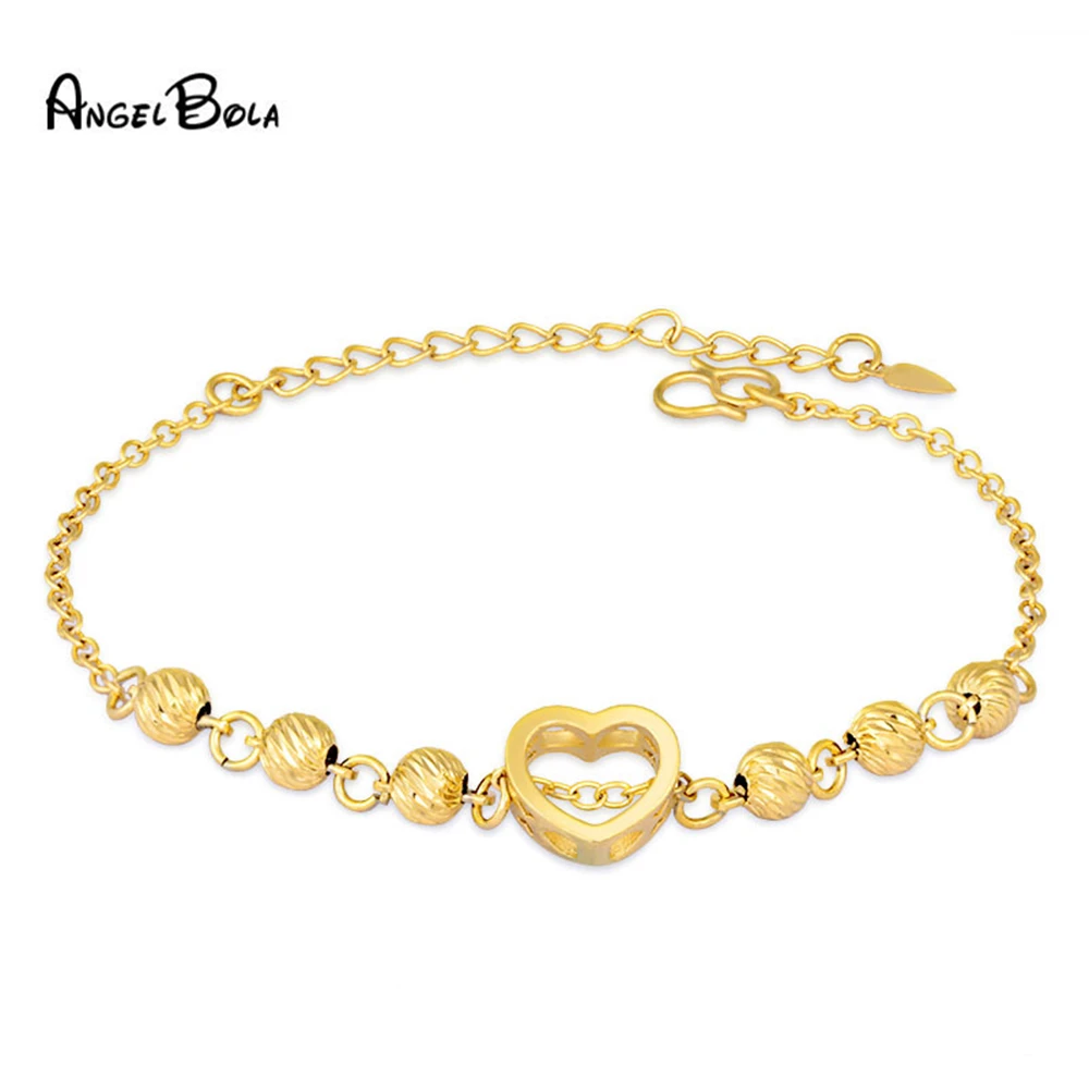 Золотые бусины в форме сердца, роскошные 24K золотые женские браслеты-шармы, регулируемый счастливый браслет для женщин, золотые ювелирные изделия, аксессуары