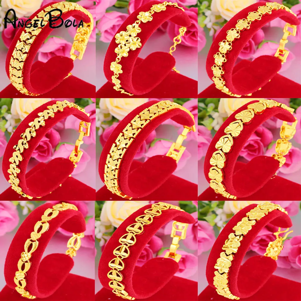 Вьетнамские золотые браслеты для женщин полое сердце любовь невесты Свадебный браслет Дубай Африка Арабские Ювелирные изделия Роскошные без выцветания браслеты