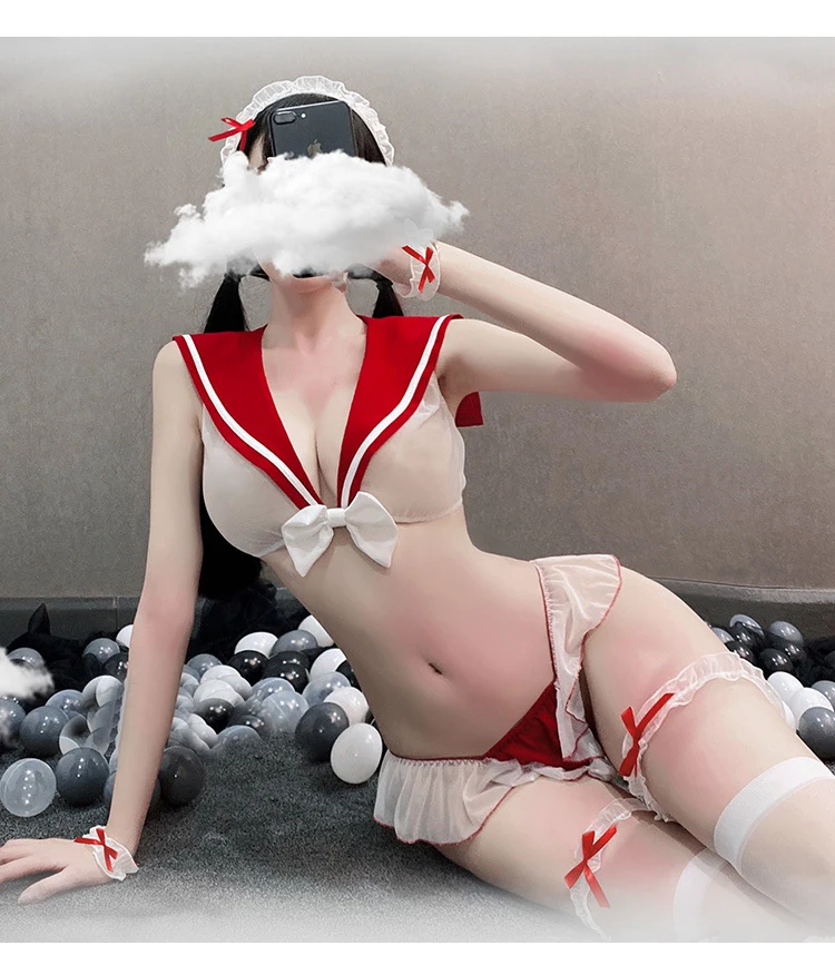 Повязка для волос + топ + нижнее белье + браслет * 2 + кольцо для ног * 2 (Чулки не приобретаются отдельно) Размер: Только один размер Доступно 3 цвета Материал-полиэстер и спандекс Высота моеля: 165 см Вес: 49 кг Подходит для веса от 40 до 60 кг