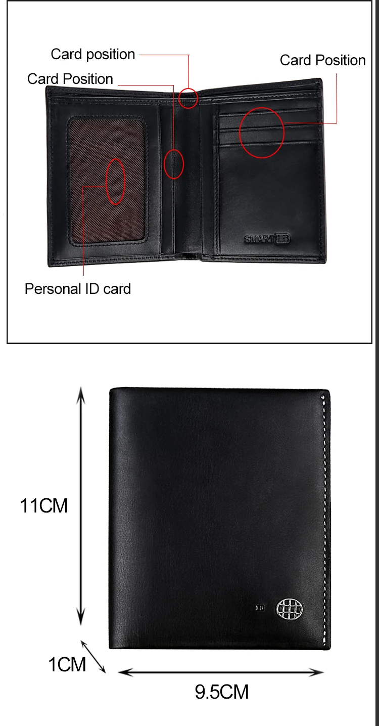 1. Вам нужно различить разницу между умным кошельком и обычным кошельком. 2. Умные кошельки и обычные кошельки изготовлены из той же кожи 3. Смарт-кошелек может быть подключен к мобильный телефон через Bluetooth, и имеет функции противоугонной, анти-потери и позиционирования. 4. Умный кошелек имеет встроенный литиевый аккумулятор, который можно заряжать с помощью usb-кабеля