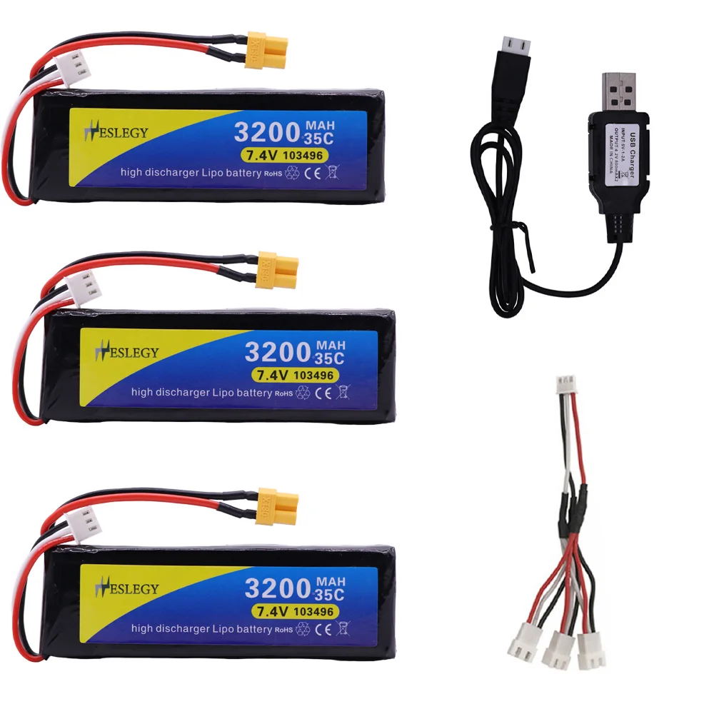 7,4 V 3200mAh 35C 2S Lipo батарея XT30 вилка с USB зарядным устройством для MJX Bugs 3 B3 RC Quadcopter запасные части 7,4 V игрушка Батарея запчасти