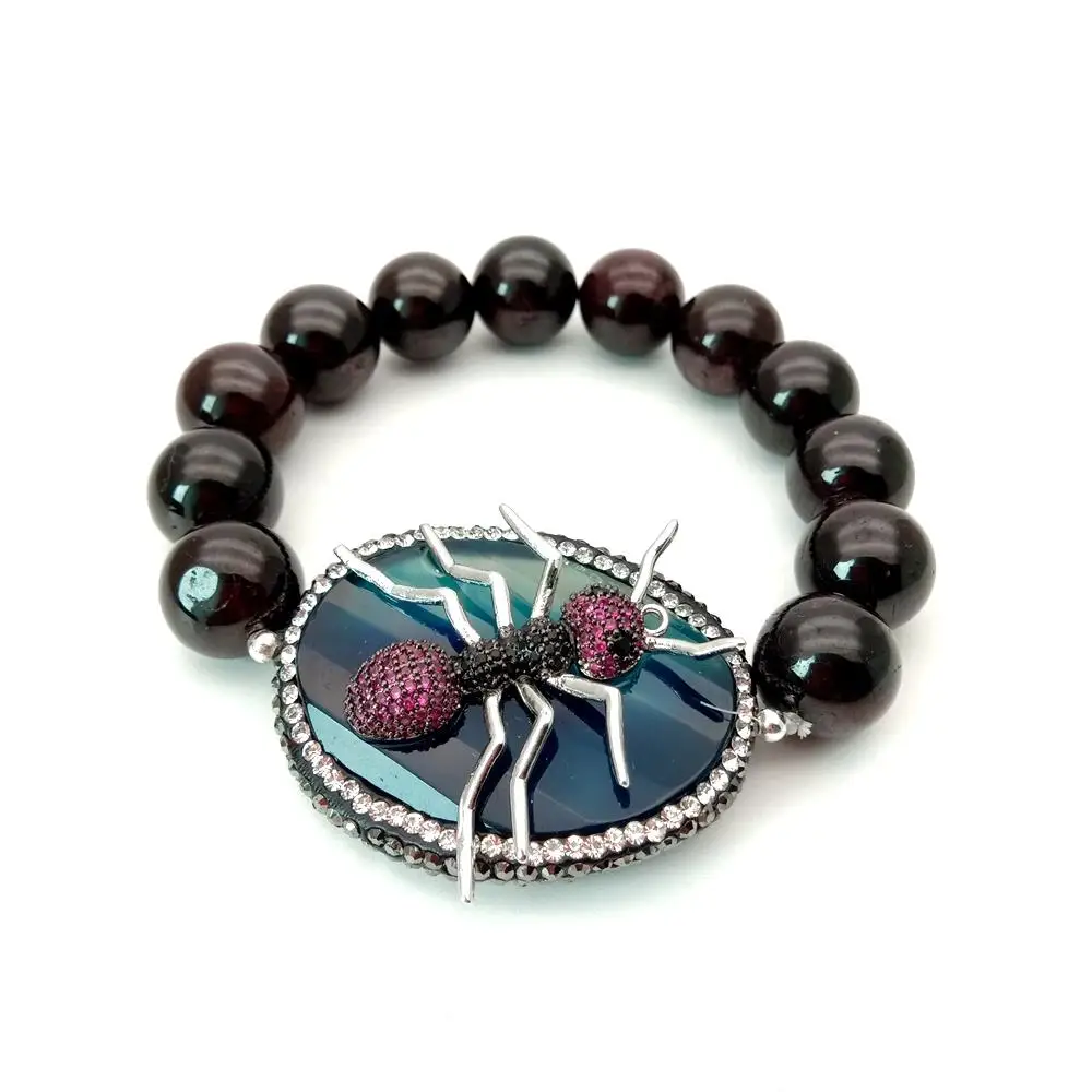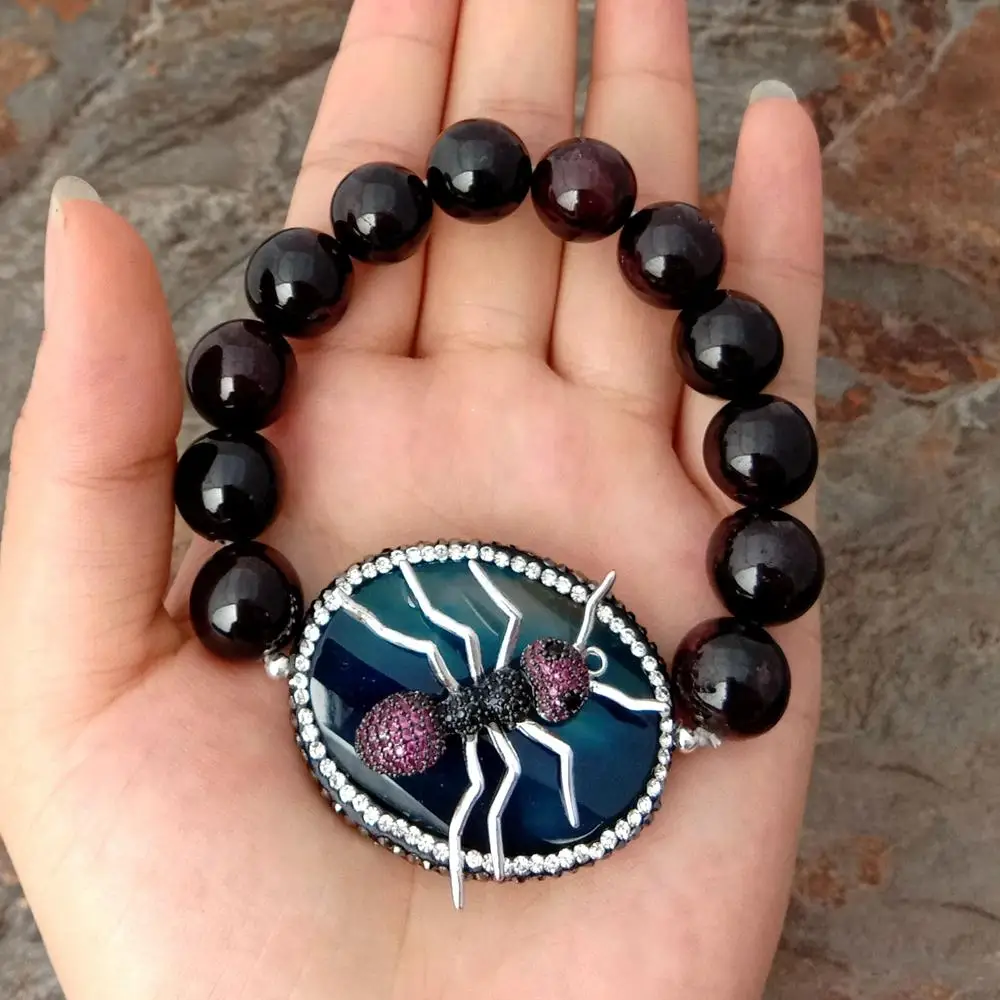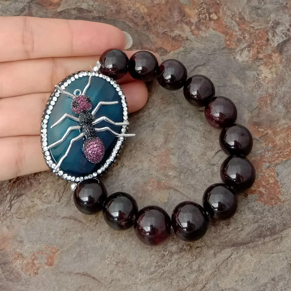 Информация о драгоценных камнями: граненый круглый гранат, синий Овальный Агат, украшенный фианитами, разъем насекомого, хорошее качество, высокий блеск!