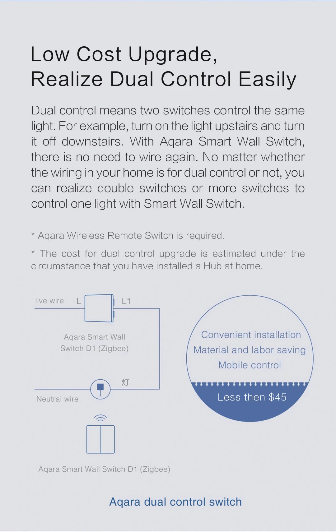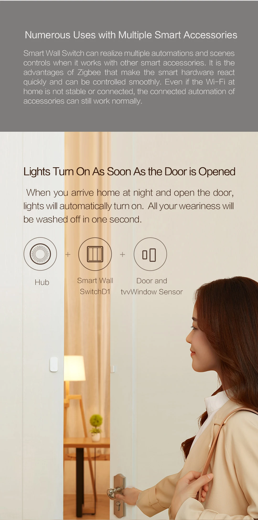 Note: The wall switch can connect the wire, can control any bulb throught the wire; while the wireless key cannot wired, only can control mijia smart bulb or light through ZigBee.