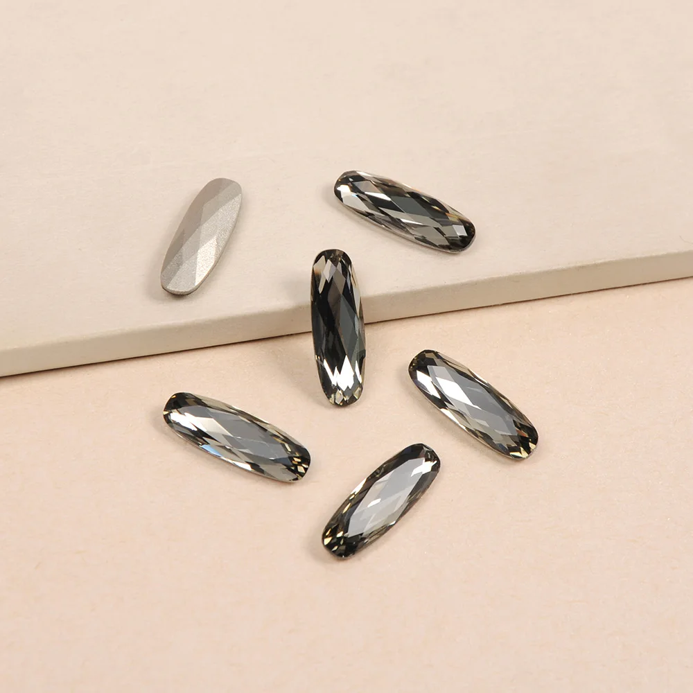 Стиль: K9 кристалл 4161 удлиненный в форме багета Цвет: черный бриллиант Материал: Хрустальное стекло K9 Используется на: Нейл-арт, одежда, обувь, сумки ..... Размер: 5x15 мм, 7x21 мм Упаковка: 5x15mm-14 шт, 7x21mm-8 шт Вид транспорта: UPS DHL FEDEX TNT Aliexpress Демонстрация продукта: