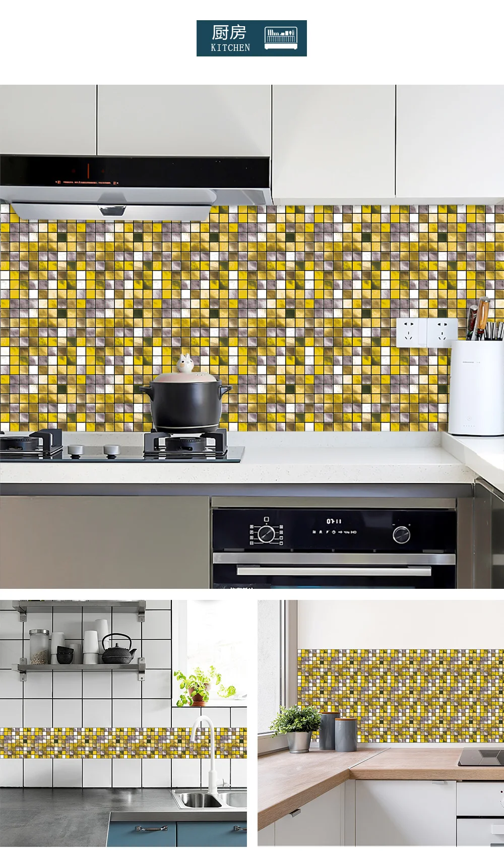 Плоская Золотая мраморная мозаика, твердая плитка, 10 шт./компл., 10/15/20/30 см, настенная наклейка, обои для кухонного шкафа, домашний декор, художественная роспись, постер, обратите внимание. Это плоская 2D печать с 3d-эффектом. Не очень 3D