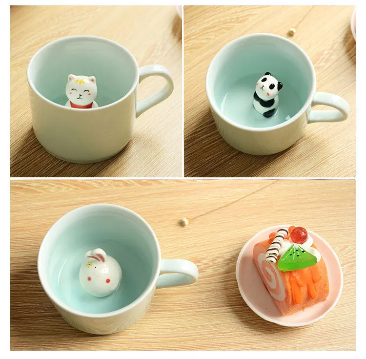 Мультфильм животных керамическая кружка, чашка для 3D милый ПЭТ чашки офис чайная чашка из селадона креативная Детская кружка для воды представлены кофе кружка