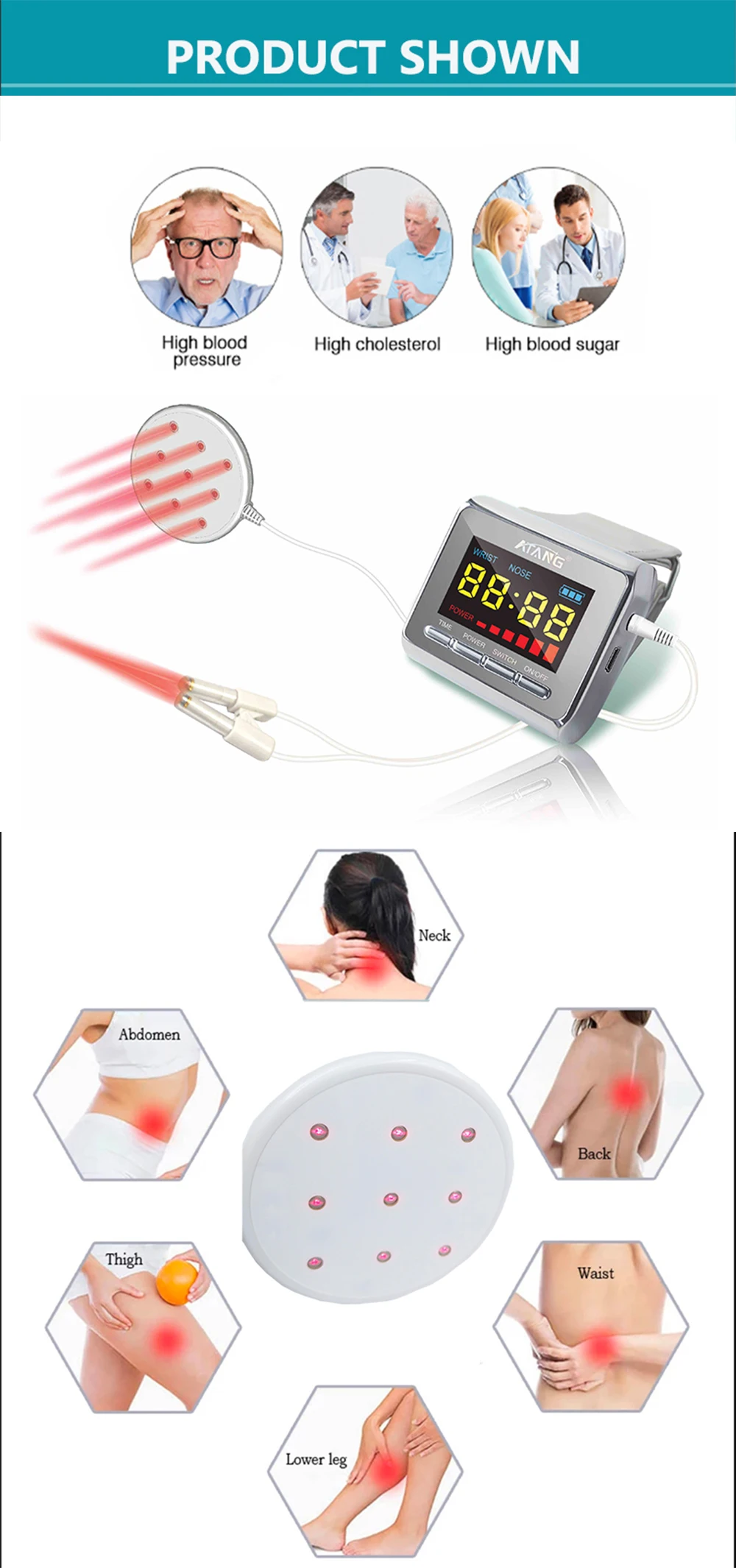 LLL Laser Watch-это инновационное устройство тройной игры, в котором используются последние исследования в области низкоуровневой лазерной обработки. Он сочетает в себе акупунктуру, местное лечение боли и внешнее Обнаружение крови и станет вашим идеальным партнером, будь то дома, на работе или в дороге. Часы оснащены больной подушечкой, аппликатором для ушей и аппликатором для носа.