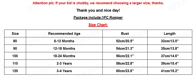 Обратите внимание: если ваш ребенок пухленький, мы рекомендуем выбрать больший размер, спасибо.