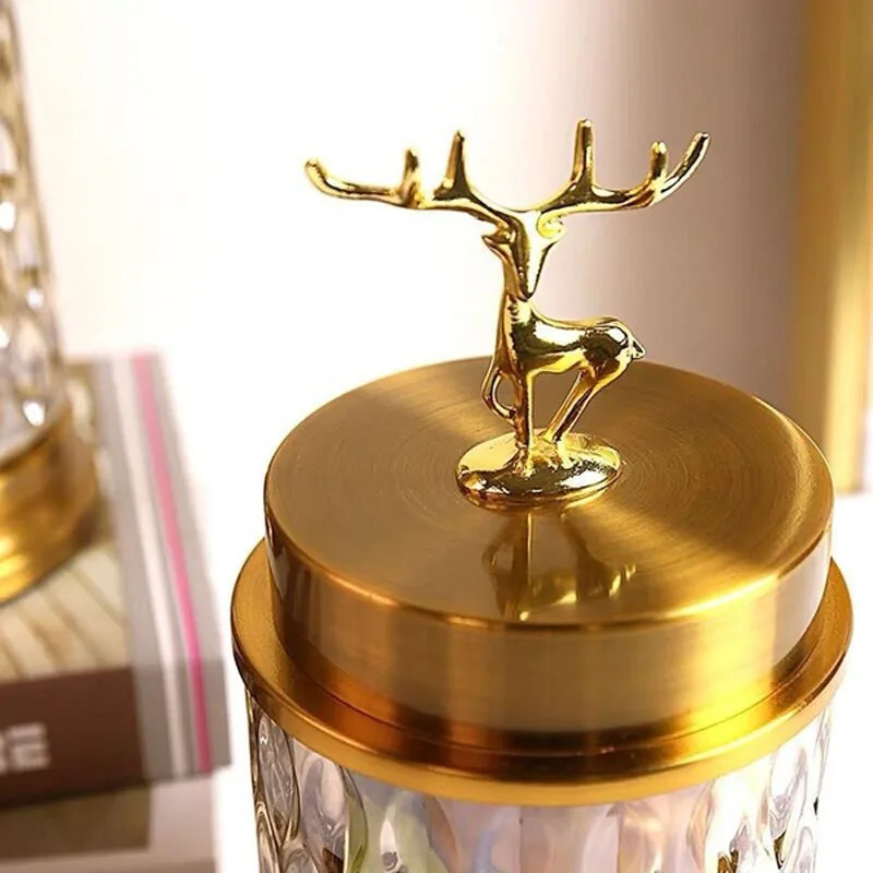 Тип товара: металлическая Стеклянная банка для хранения конфет Материал: стекло, сплав Цвет: Золотой Отделка поверхности: покрытие Для: украшения дома Форма: цилиндрическая Размер подставки в стиле оленя: 12 см * 24 см Размер сидящего оленя: 12 см * 23 см Посылка включает в себя: 1 бутылка для хранения