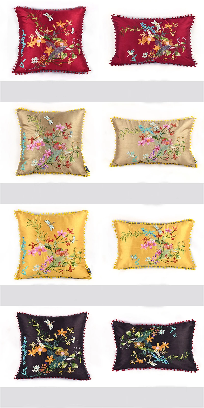 Chinese Embroidery Pillow Cushion Cover Flower Dragonfly Throw Decorative Pillows Cojines Decorativos Para Sofa Coussin Cushions