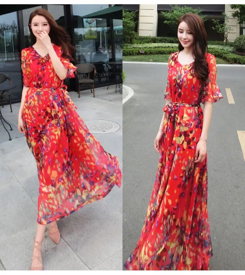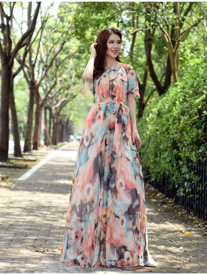 Лоскутные stripes Розовый Макси платья Женский Весна 2018 с коротким рукавом мода